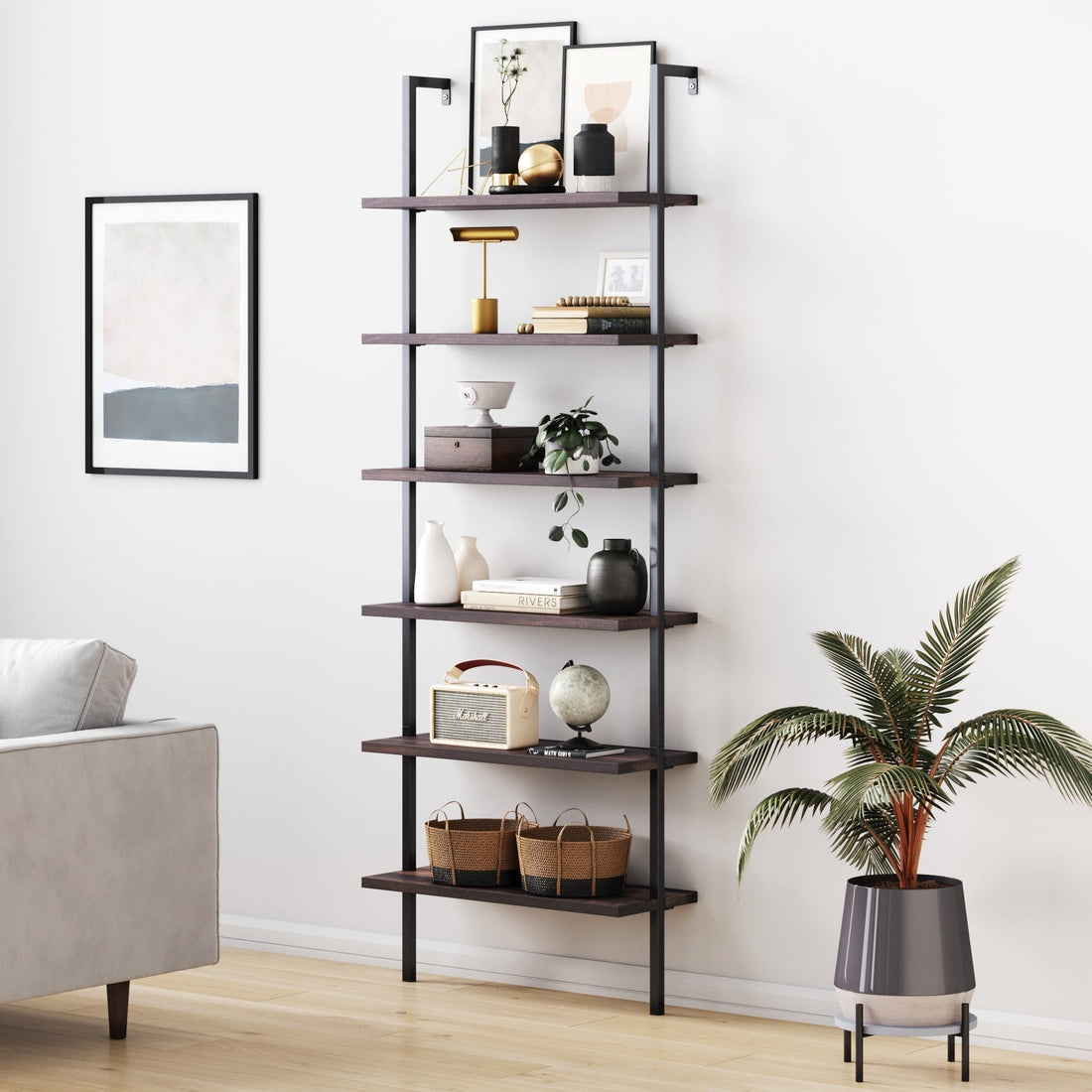 6-Shelf Ladder Bookshelf Nutmeg Matte Black
