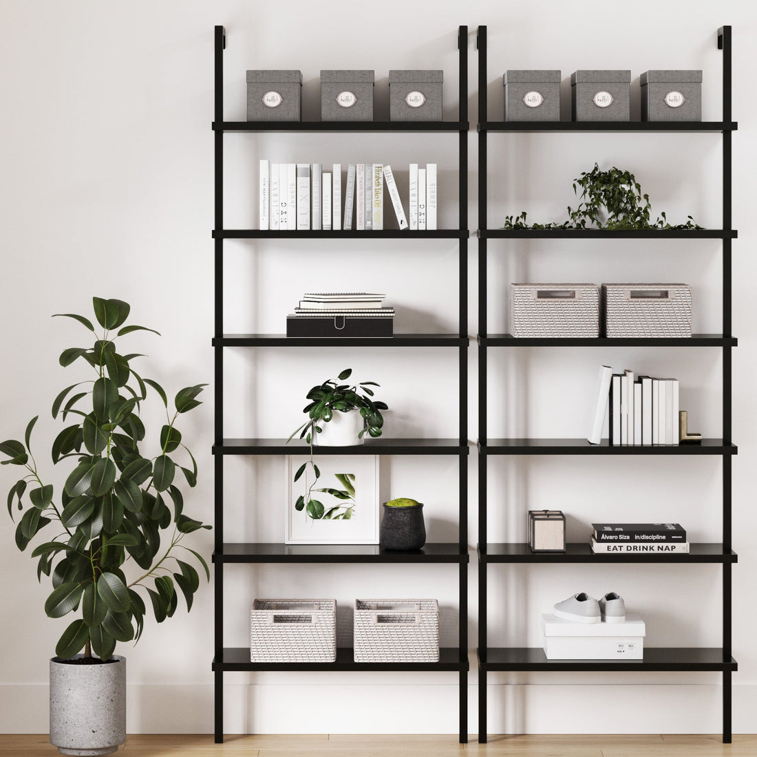 6-Shelf Wall Mount Bookshelf Black (Set of 2)