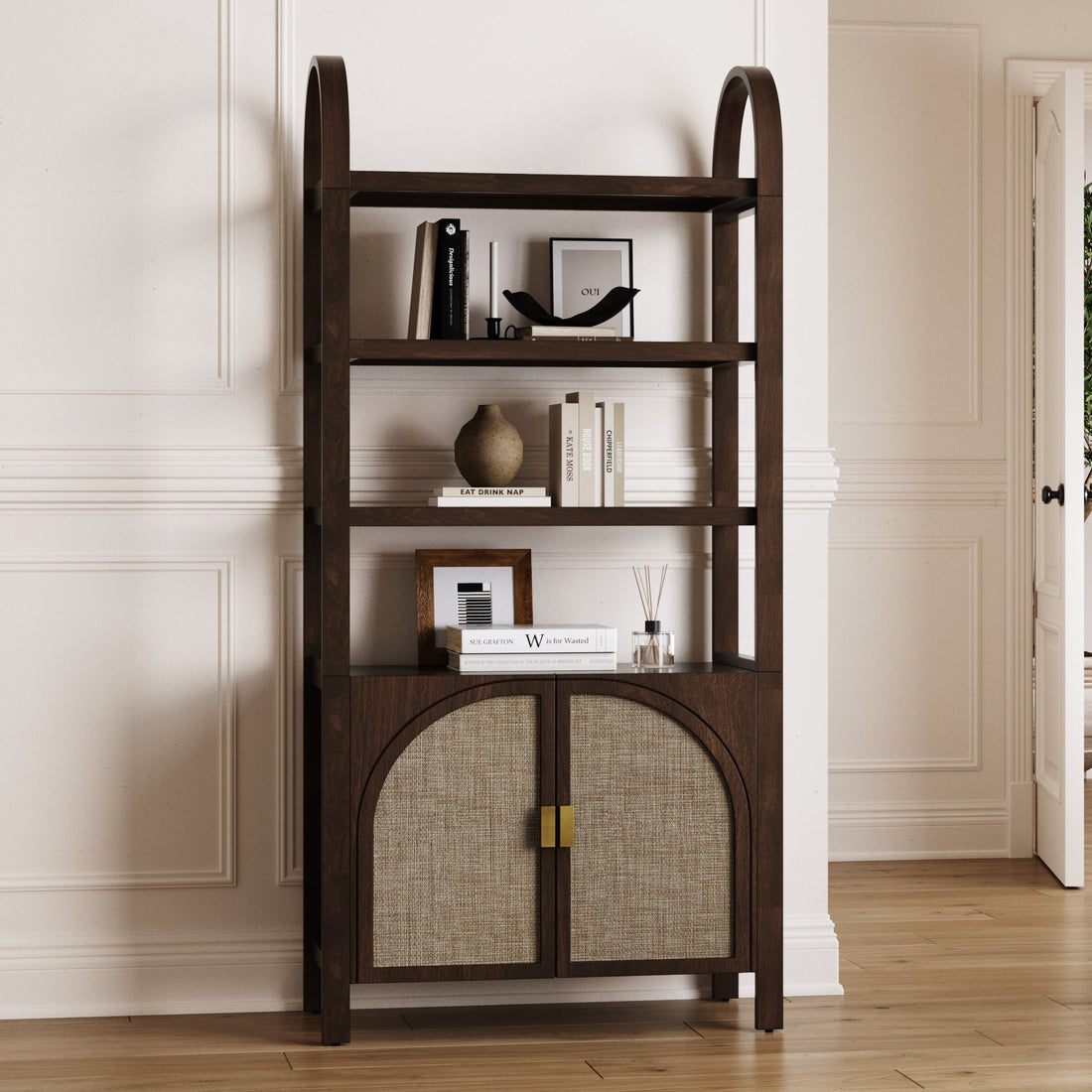 Arched Door Rattan Bookshelf with Doors Dark Acacia