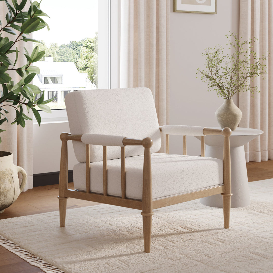 Bohemian Boucle Accent Chair with Arm Cream Boucle