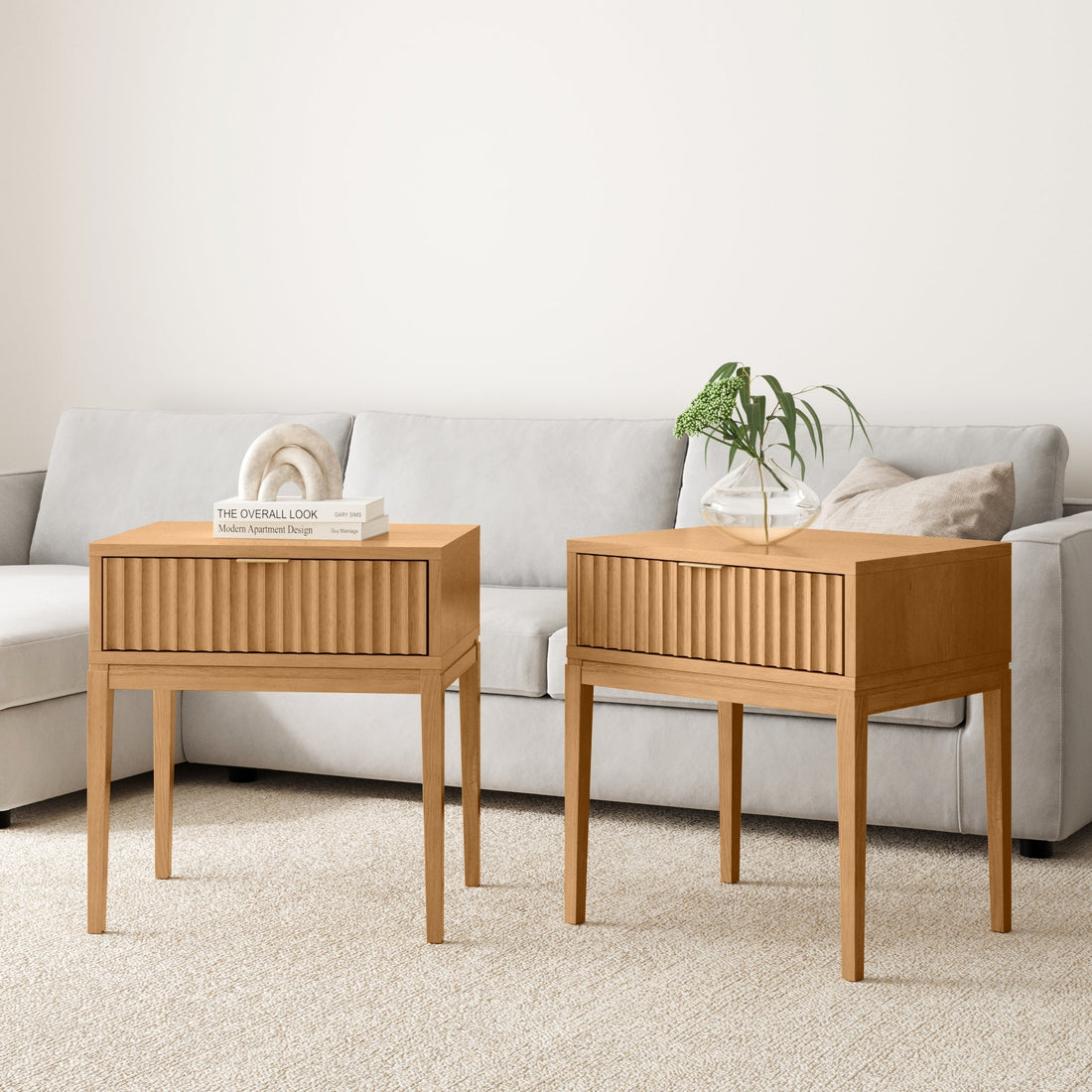 Mid-Century Fluted Nightstands Warm Pine (Set of 2)