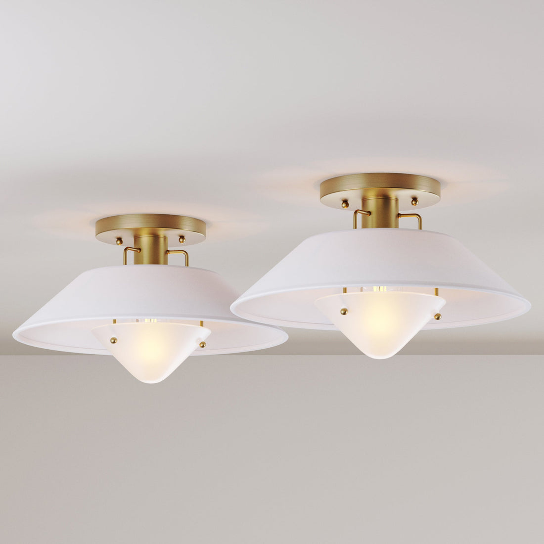 Linen Mid-Century Modern Flush Mount Ceiling Light (Set of 2)