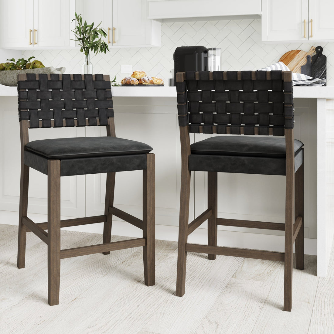 Faux Leather Woven Counter Height Bar Stools Black (Set of 2)