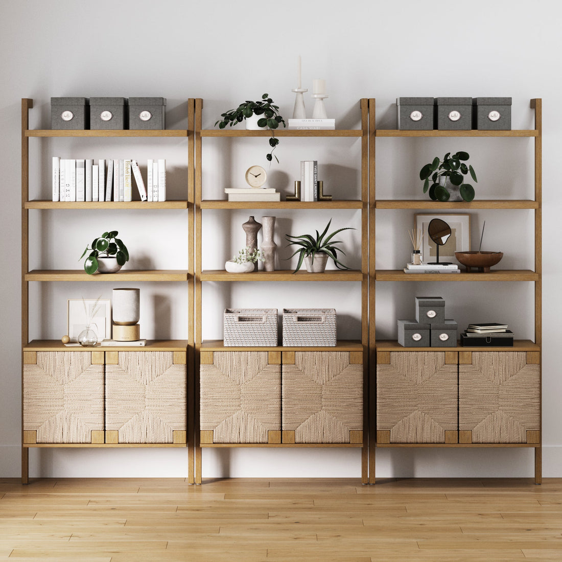 Seagrass Wall Bookshelves with Doors Light Brown (Set of 3)