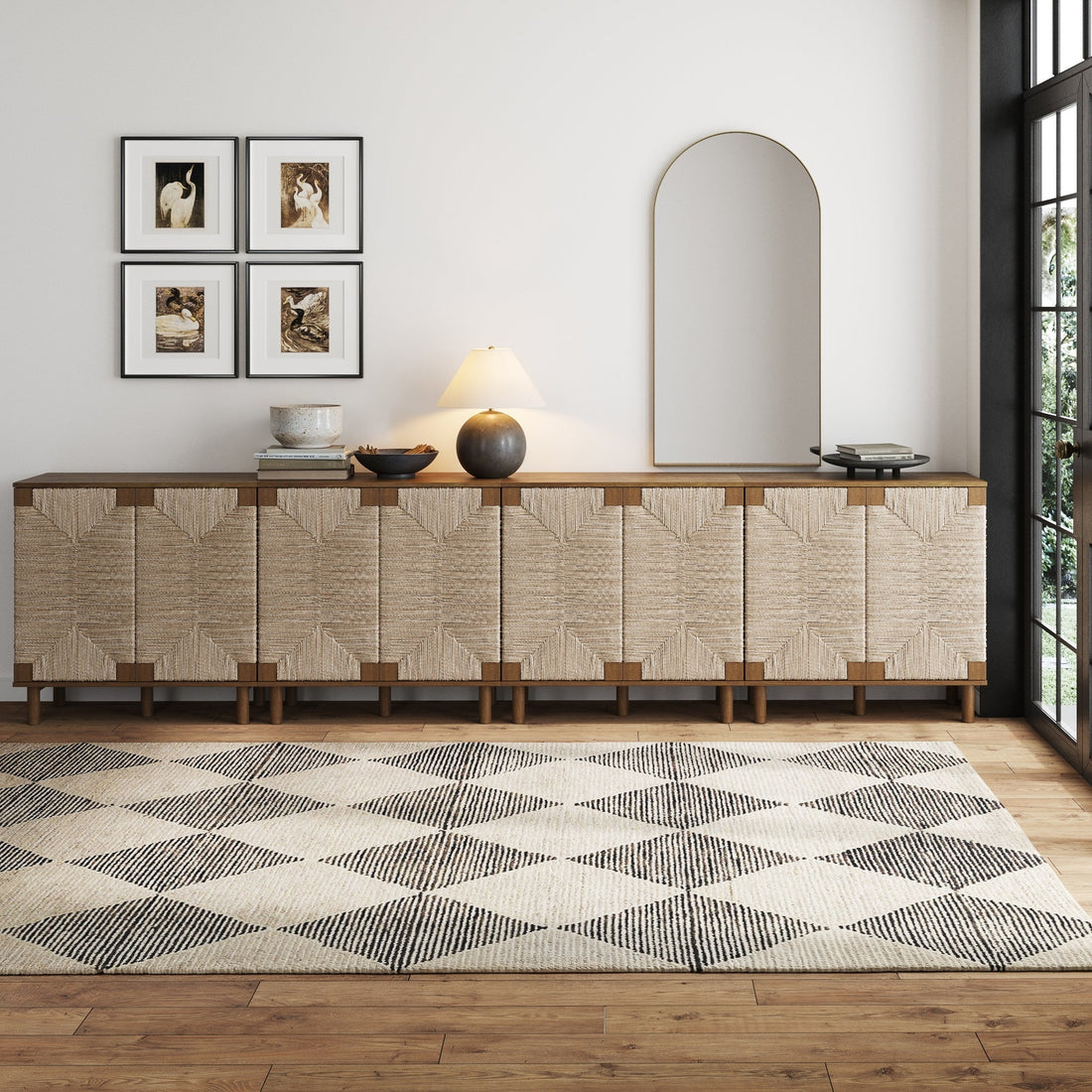 Large Seagrass TV Console Credenza Dark Brown (Set of 4)