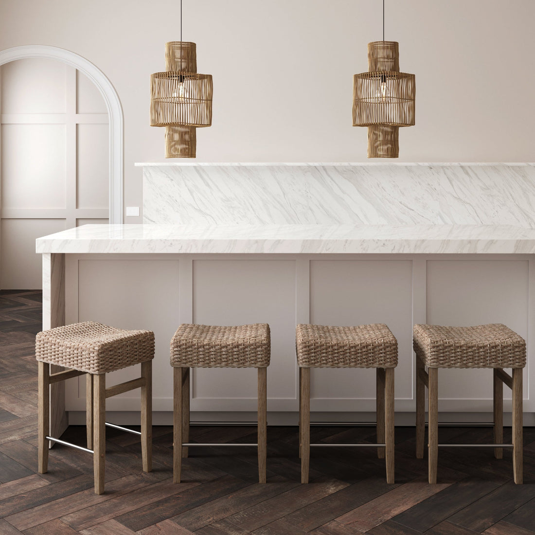 Boucle & Seagrass Bar Stool Light Brown (Set of 4)