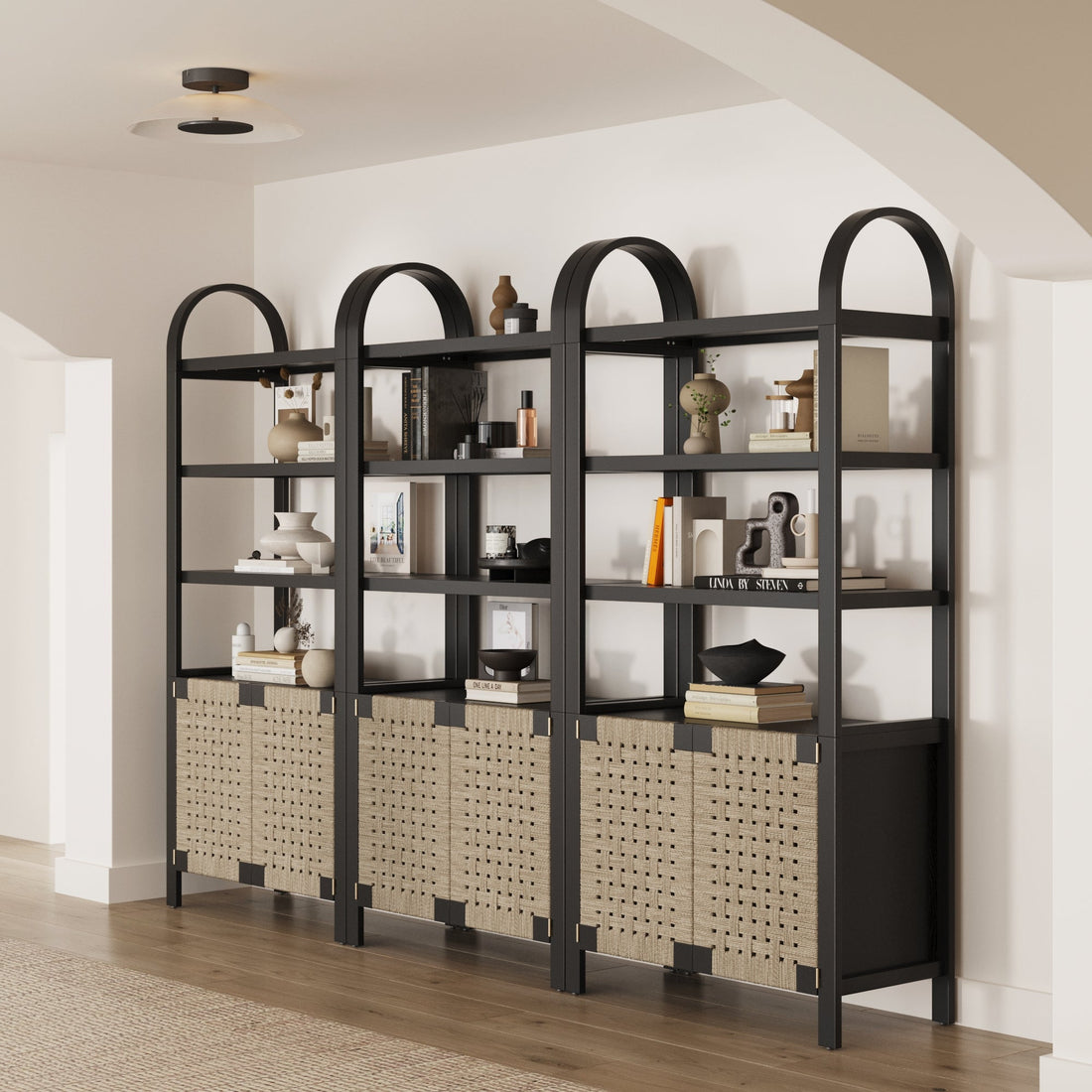 Boho Woven Seagrass Bookshelf Black (Set of 3)
