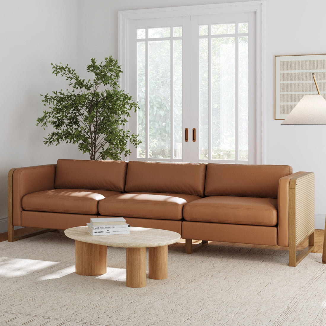 Boho 3-Seater Sofa Solid Wood Legs & Rattan Arm Camel