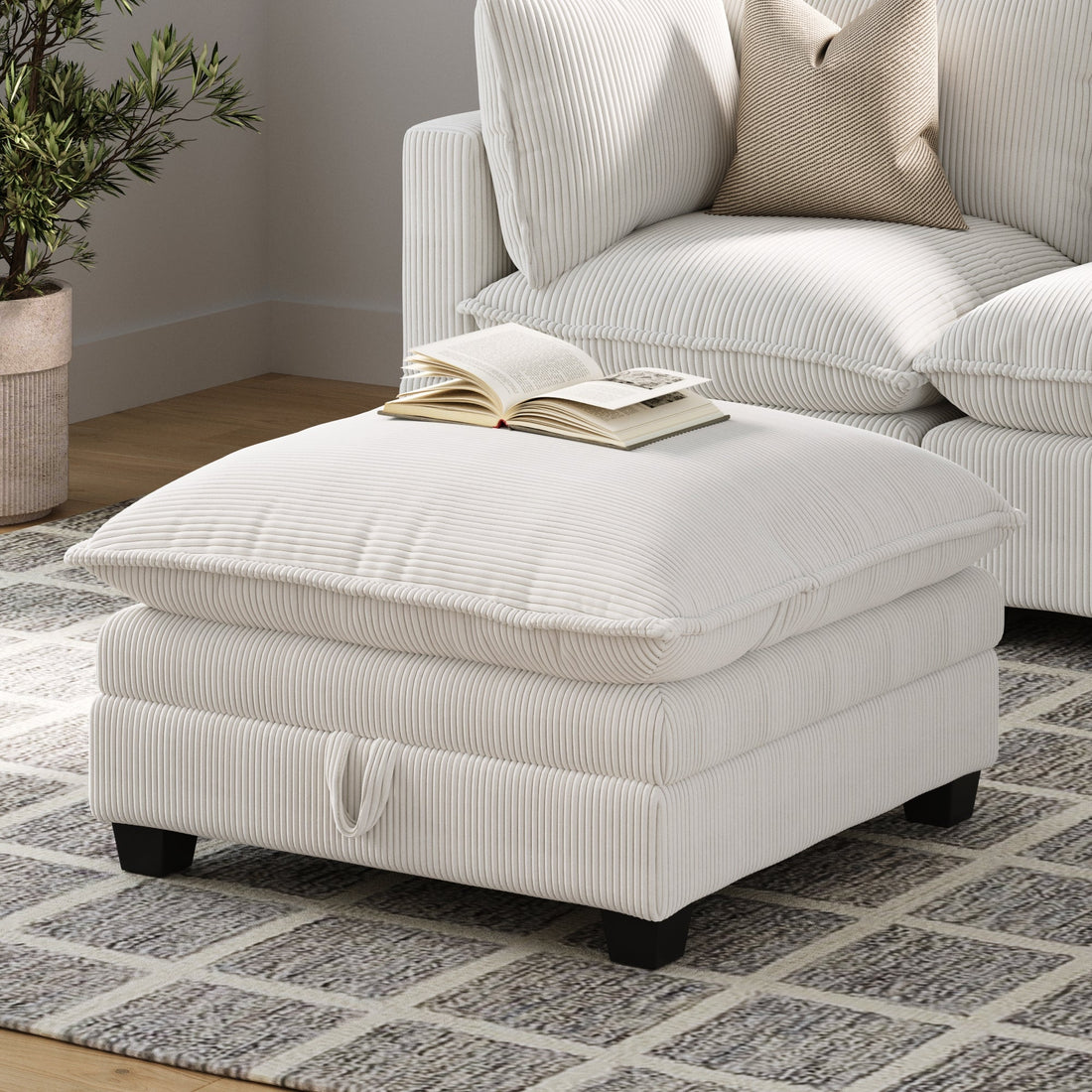 Soft Fabric Wood Frame Hidden Storage Ottoman Gray