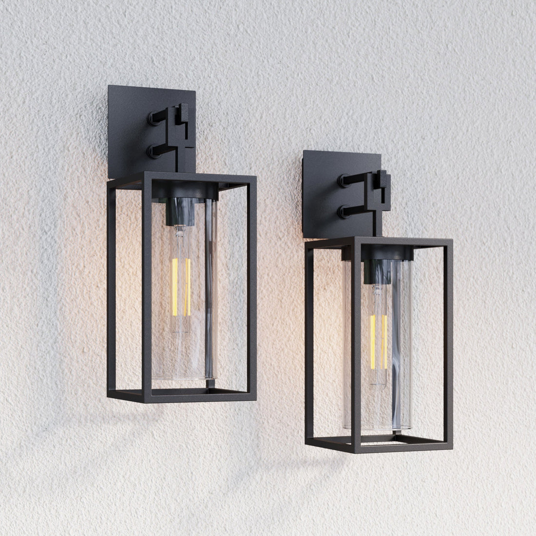 Metal & Glass Outdoor Wall Lights (Set of 2)
