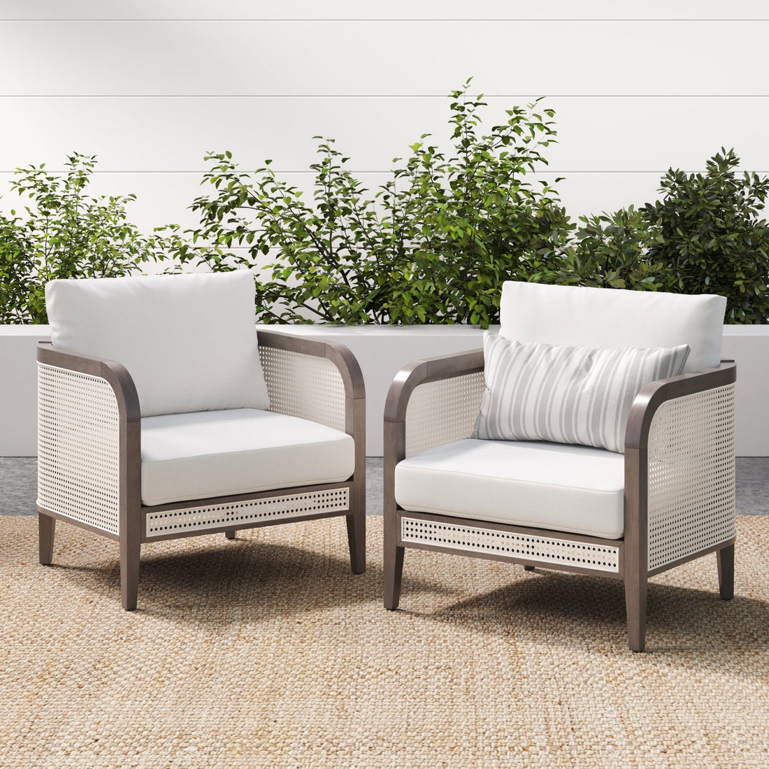 Outdoor Wood & Rattan Patio Arm Chairs Graphite (Set of 2)