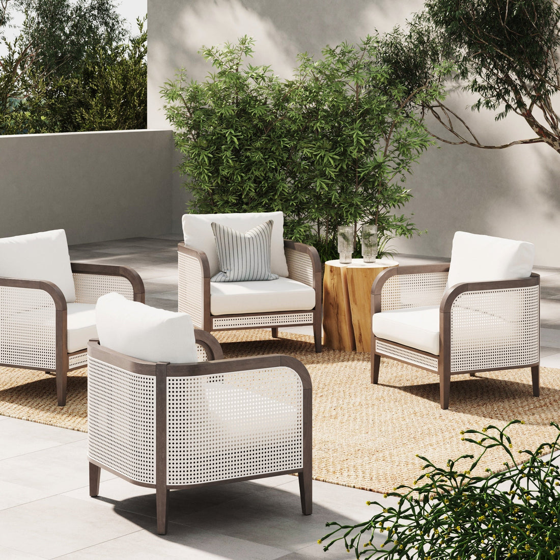 Outdoor Wood & Rope Patio Arm Chairs Ash White (Set of 4)