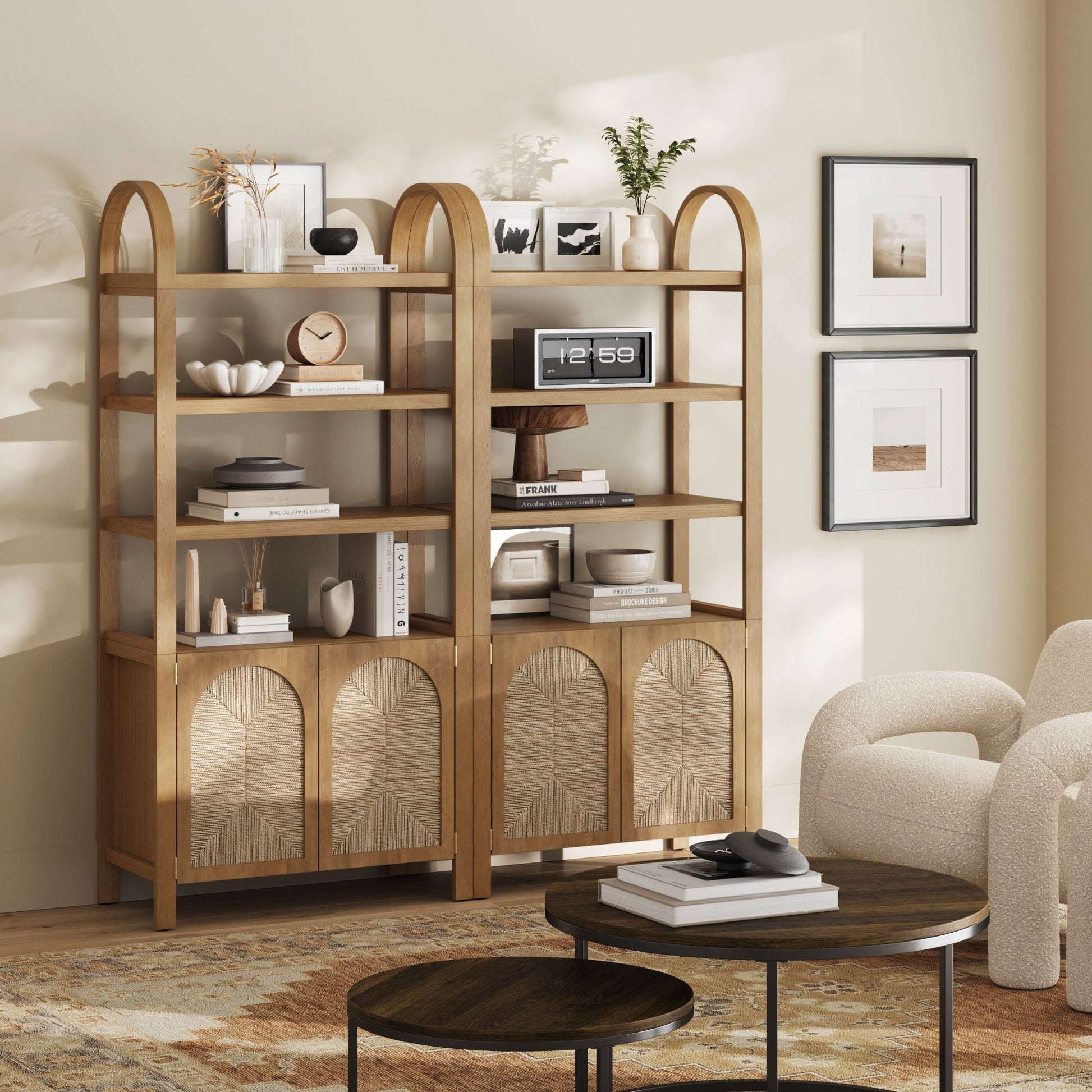 Boho Seagrass Arched Bookshelf Light Brown (Set of 2)
