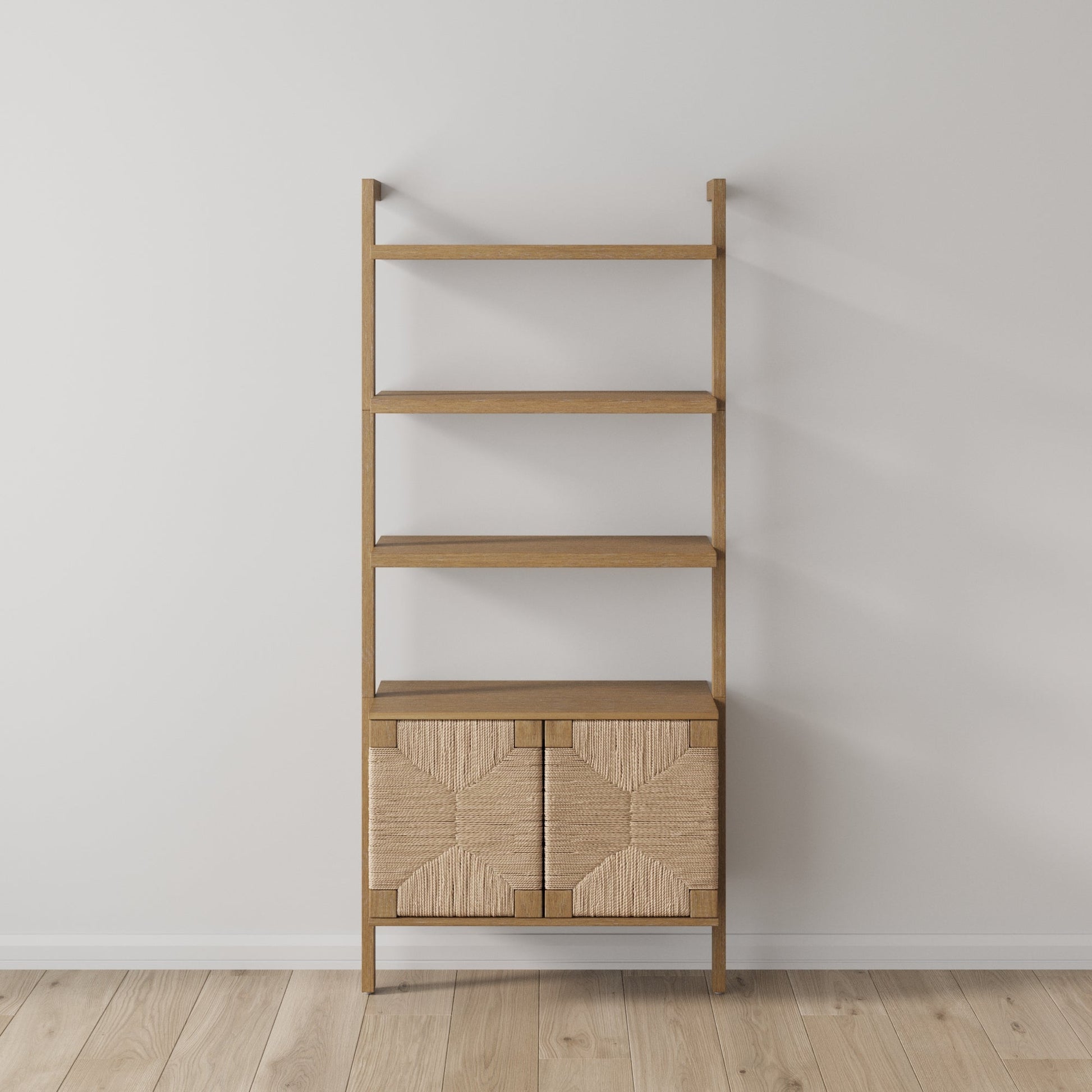 Introducing the one-of-a-kind Beacon Bookshelf—where boho charm and practicality unite! Hand-woven natural seagrass door fronts add texture, while the sturdy wood construction ensures it will stand the test of time. This bookshelf is our go-to for timeless organization, featuring open shelving to display your cherished trinkets and closed storage with push latch cabinet doors to tuck away items you prefer hidden. Embrace the cozy warmth of the wire-brushed wood grain, and rest easy knowing it can be securely installed on your wall to eliminate any tipping hazards. Experience the joy of a boho-inspired space with the Beacon Bookshelf as your style centerpiece!