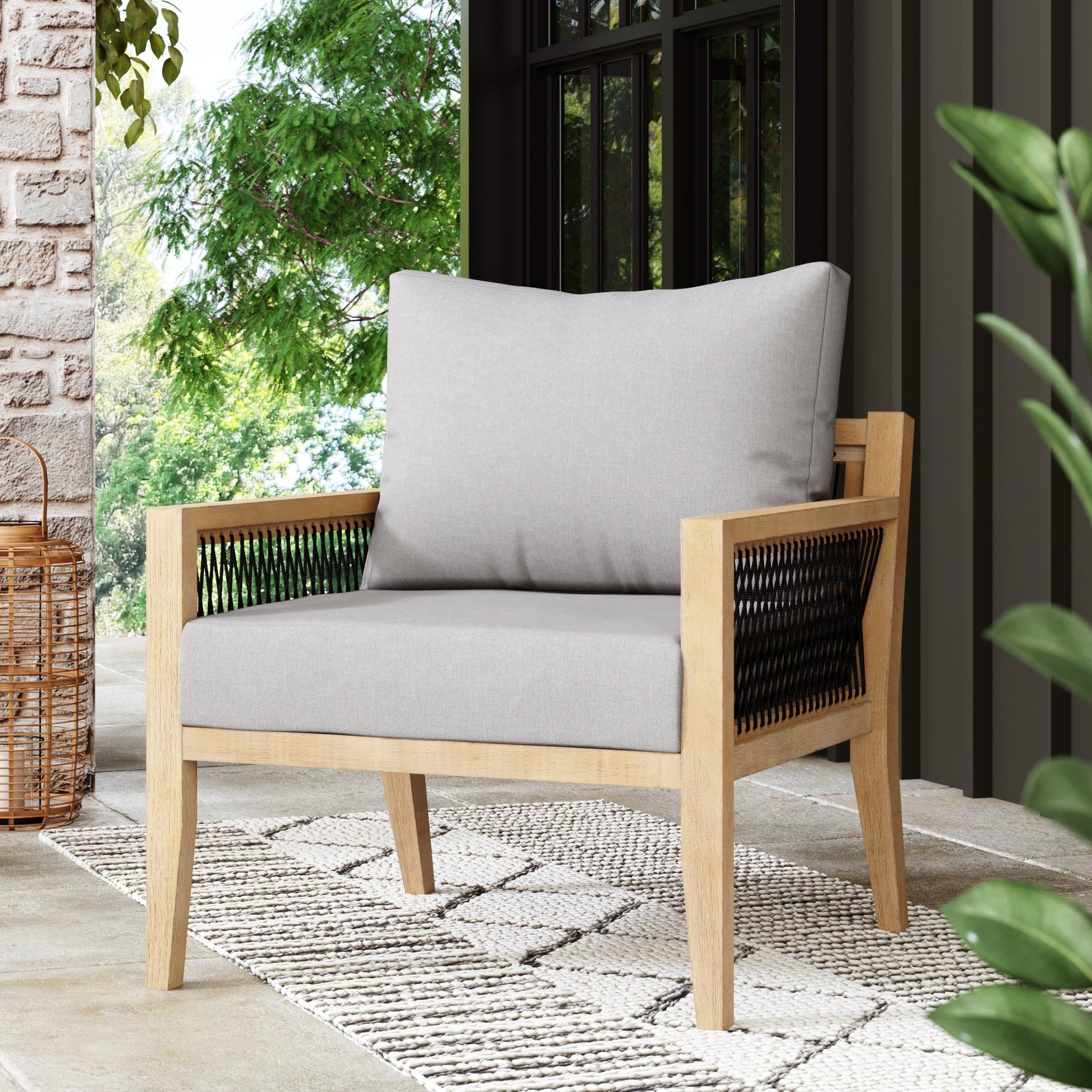 Outdoor Wood Patio Arm Chairs Gray Acacia (Set of 4)