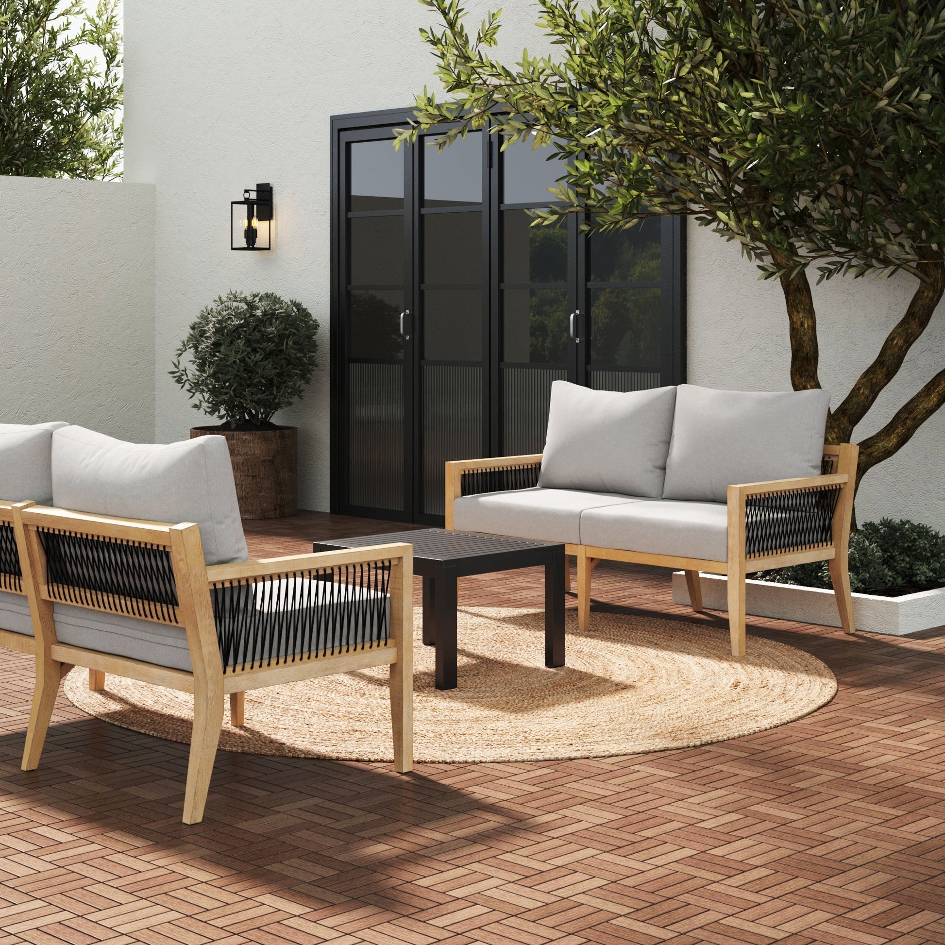 Outdoor Patio Wood Loveseats Gray Acacia (Set of 2)