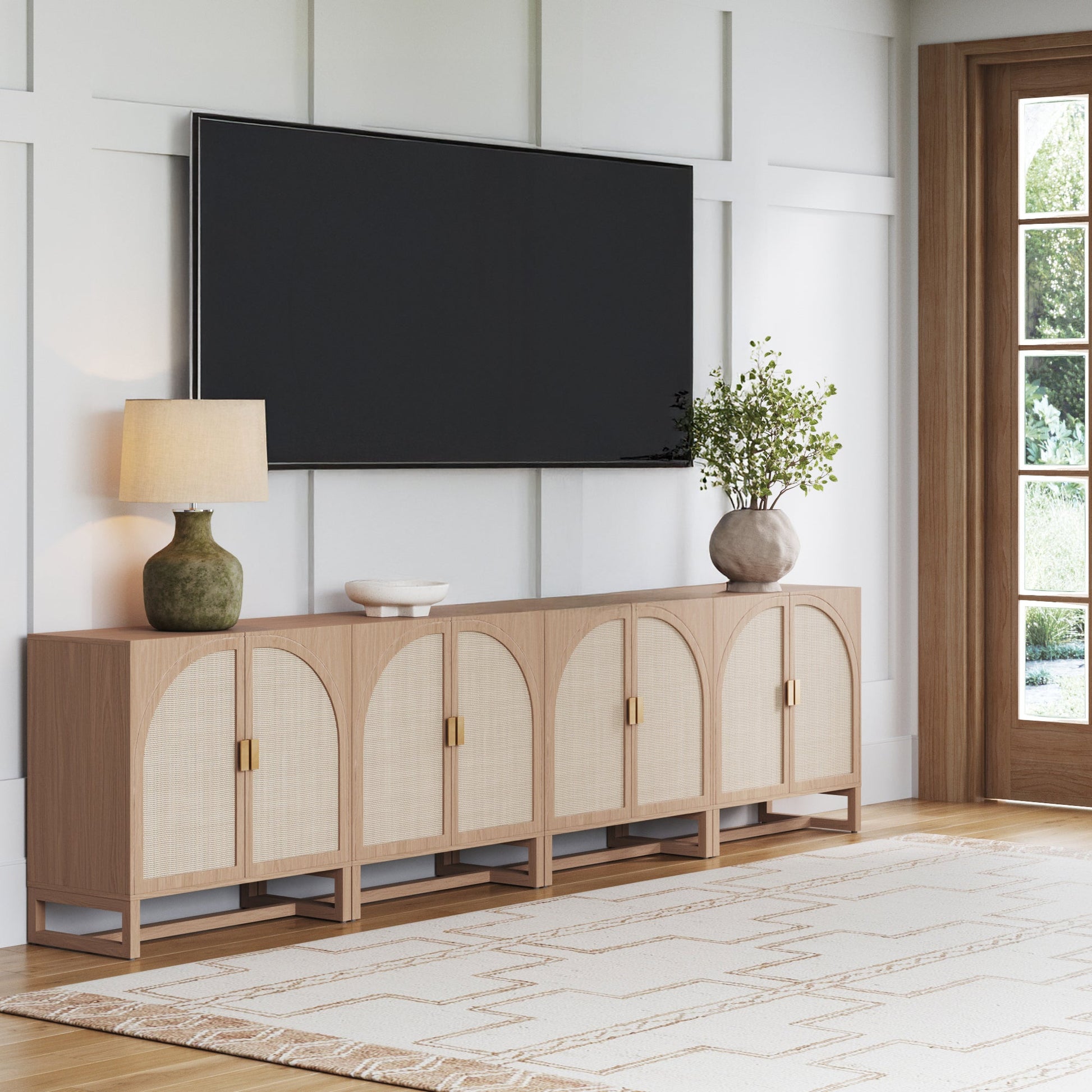 Large Boho Arched TV Console Credenza Raw Oak (Set of 4)