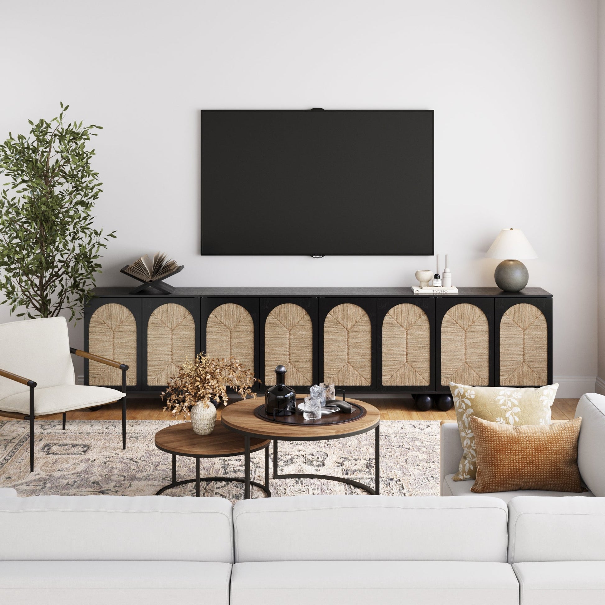 Large Seagrass Arched TV Console Credenza Black (Set of 4)