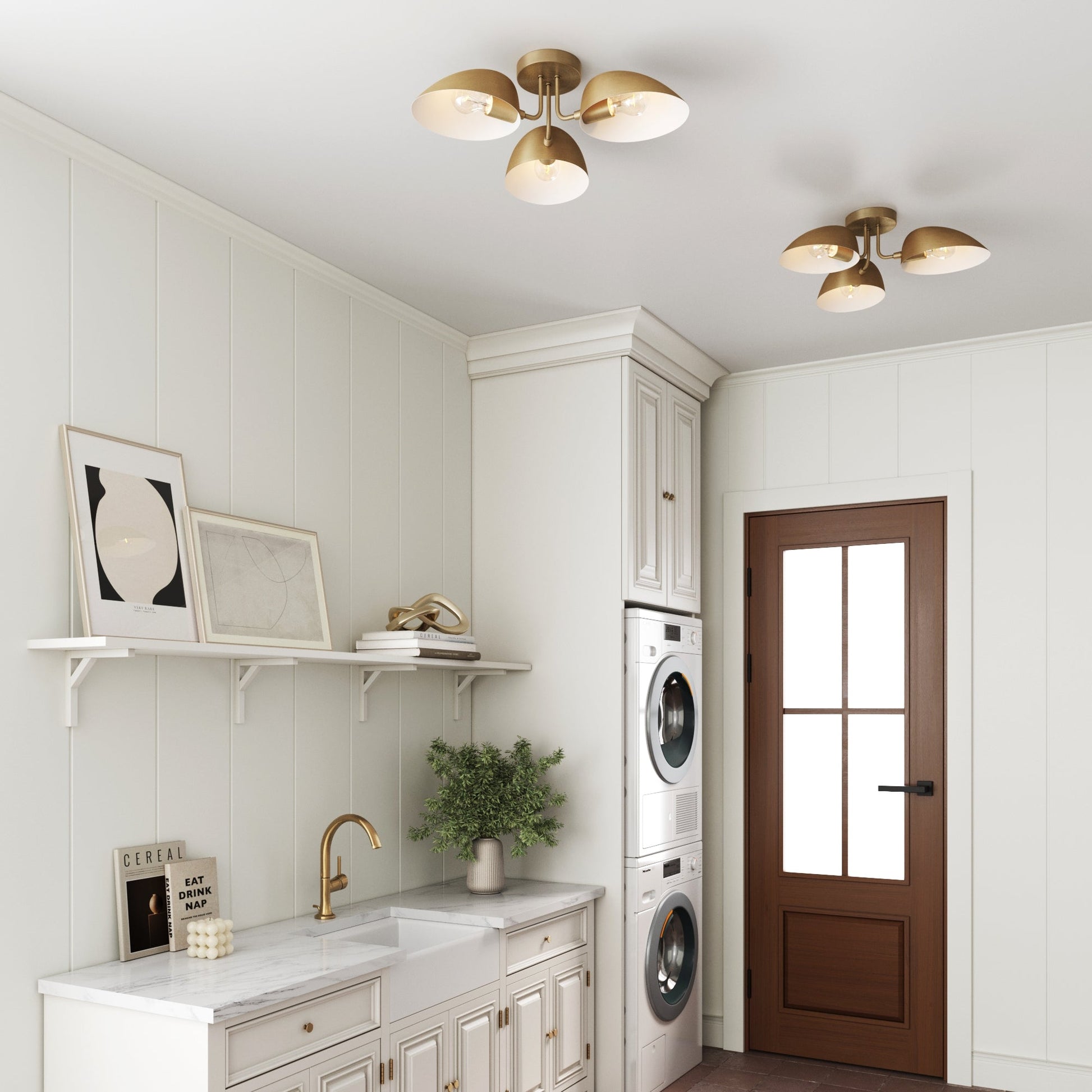 Metal 3-Arm Flush Mount Ceiling Light Brass (Set of 2)