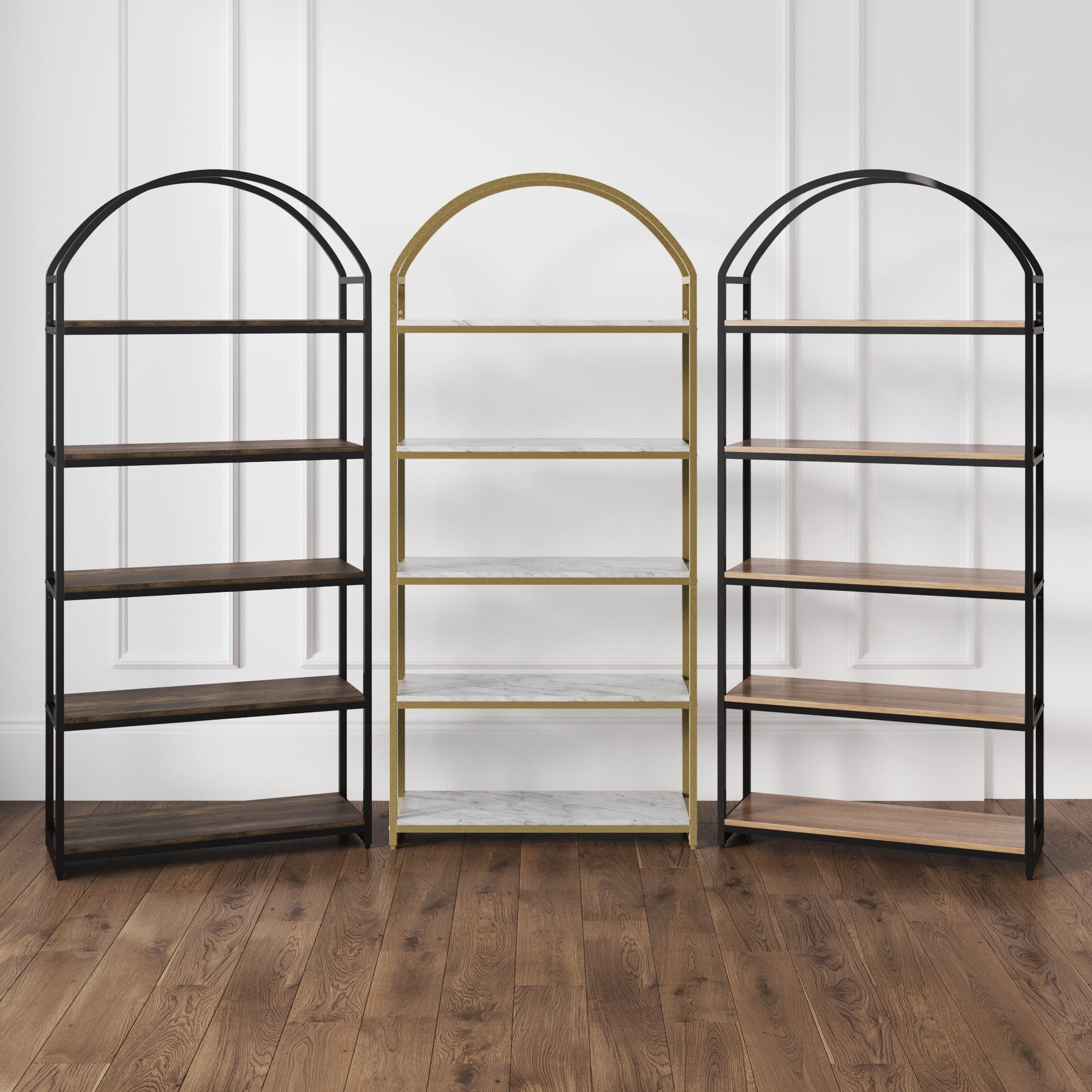 Wood & Metal 5-Shelf Arched Bookshelf Black