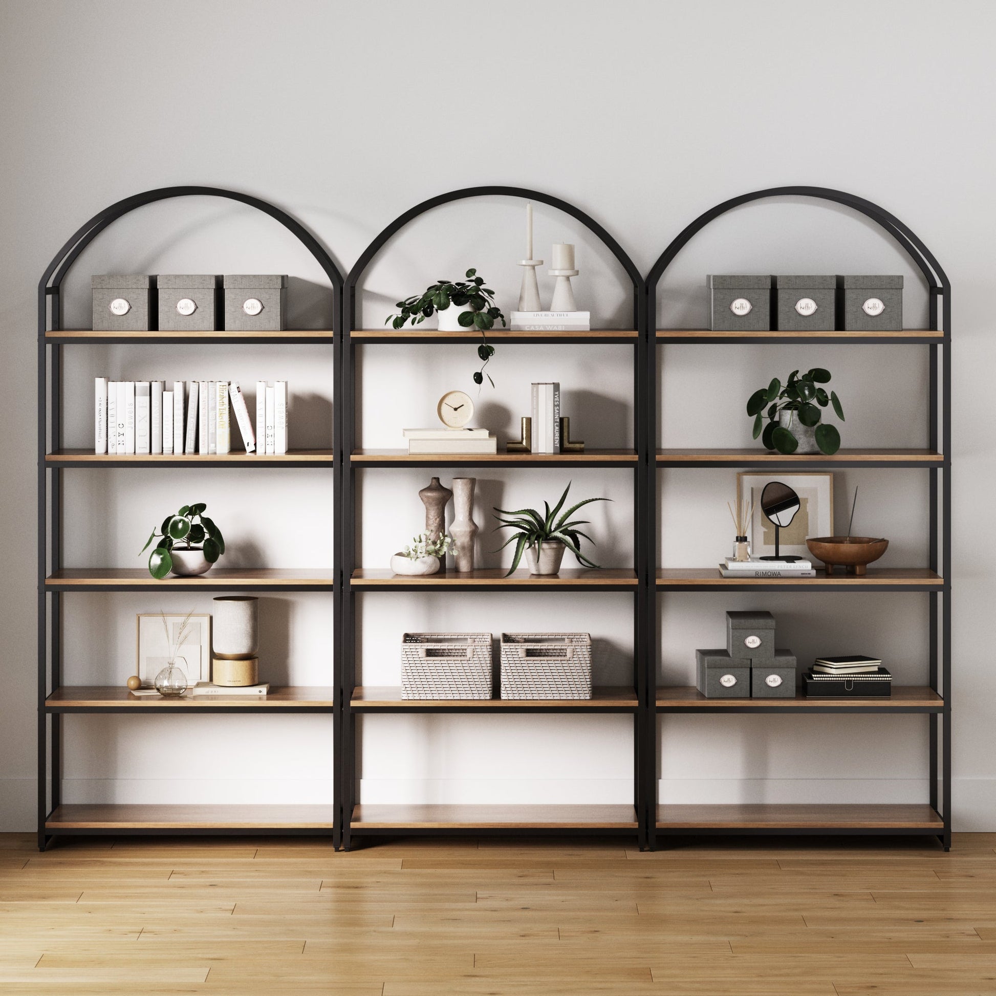 Metal 5-Shelf Arched Bookshelves Oak (Set of 3)