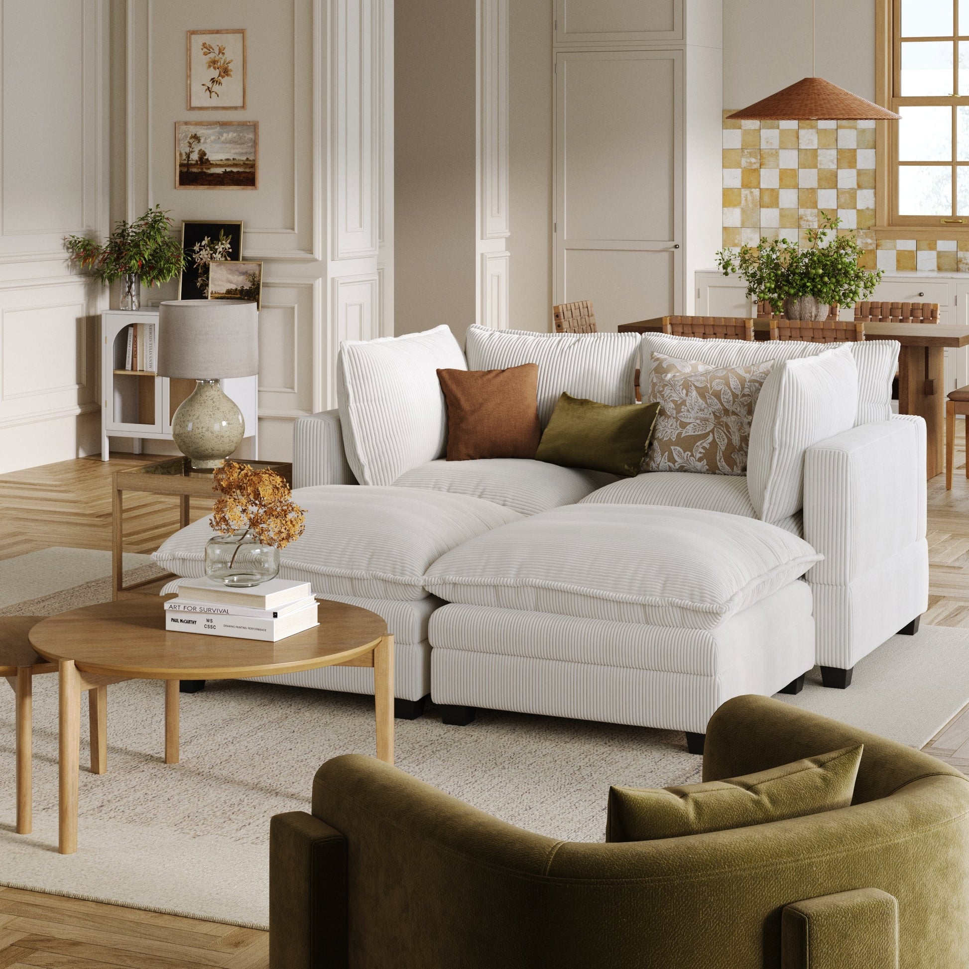 Corduroy 4-Piece Armless Cloud Pit Sofa Couch Pearl White