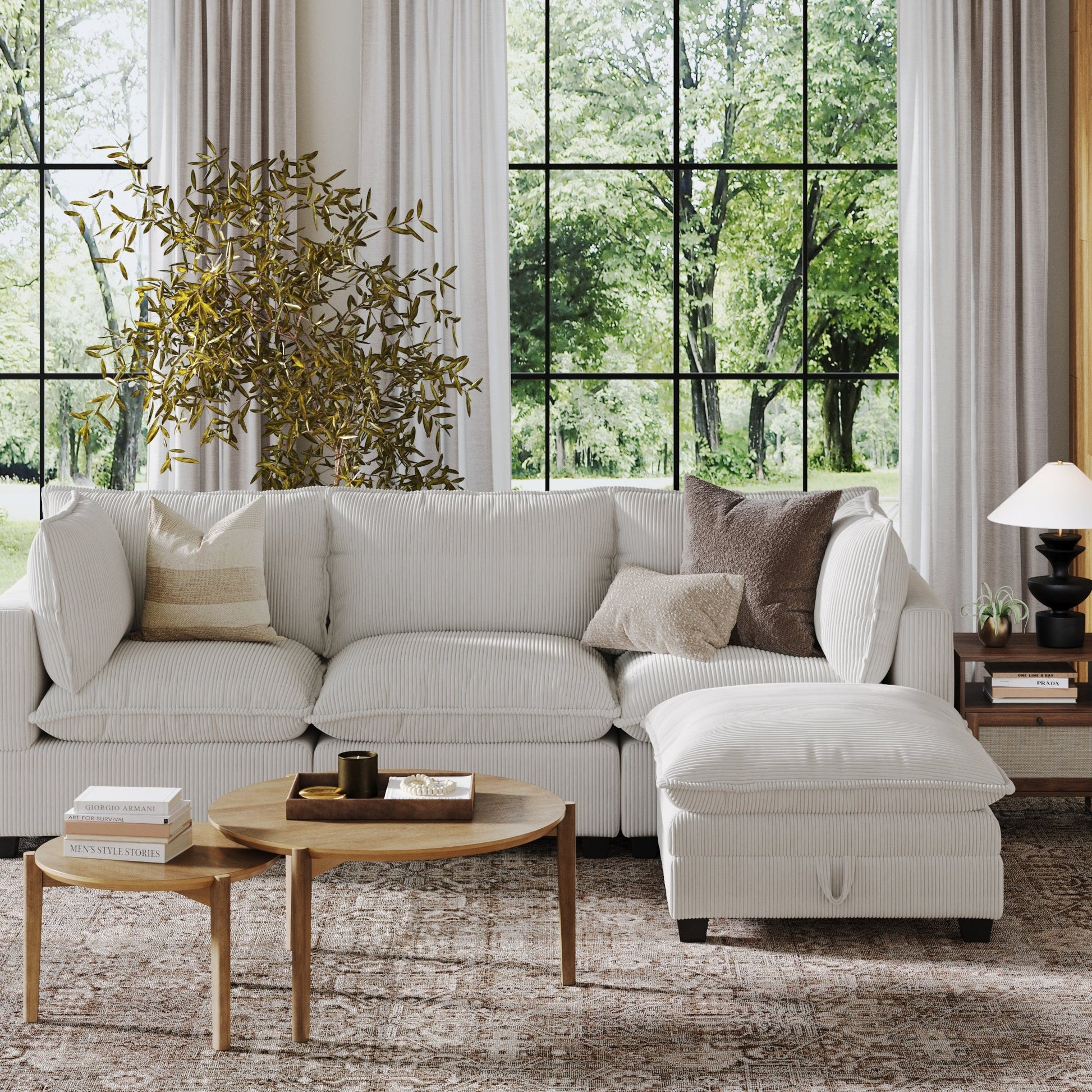 Introducing the Chelsea Cloud Couch—a perfect blend of comfort and style designed to make your living space a cozy haven. Wrapped in luxuriously soft corduroy fabric with eye-catching ridges, this sofa features deep seat cushions and plush, pillow-like back cushions. Enjoy effortless setup with quick assembly. Built to last, each seat supports up to 300 lbs., ensuring everyone can sink into cloud-like comfort. Experience the ultimate in relaxation with the Chelsea Cloud Couch today!