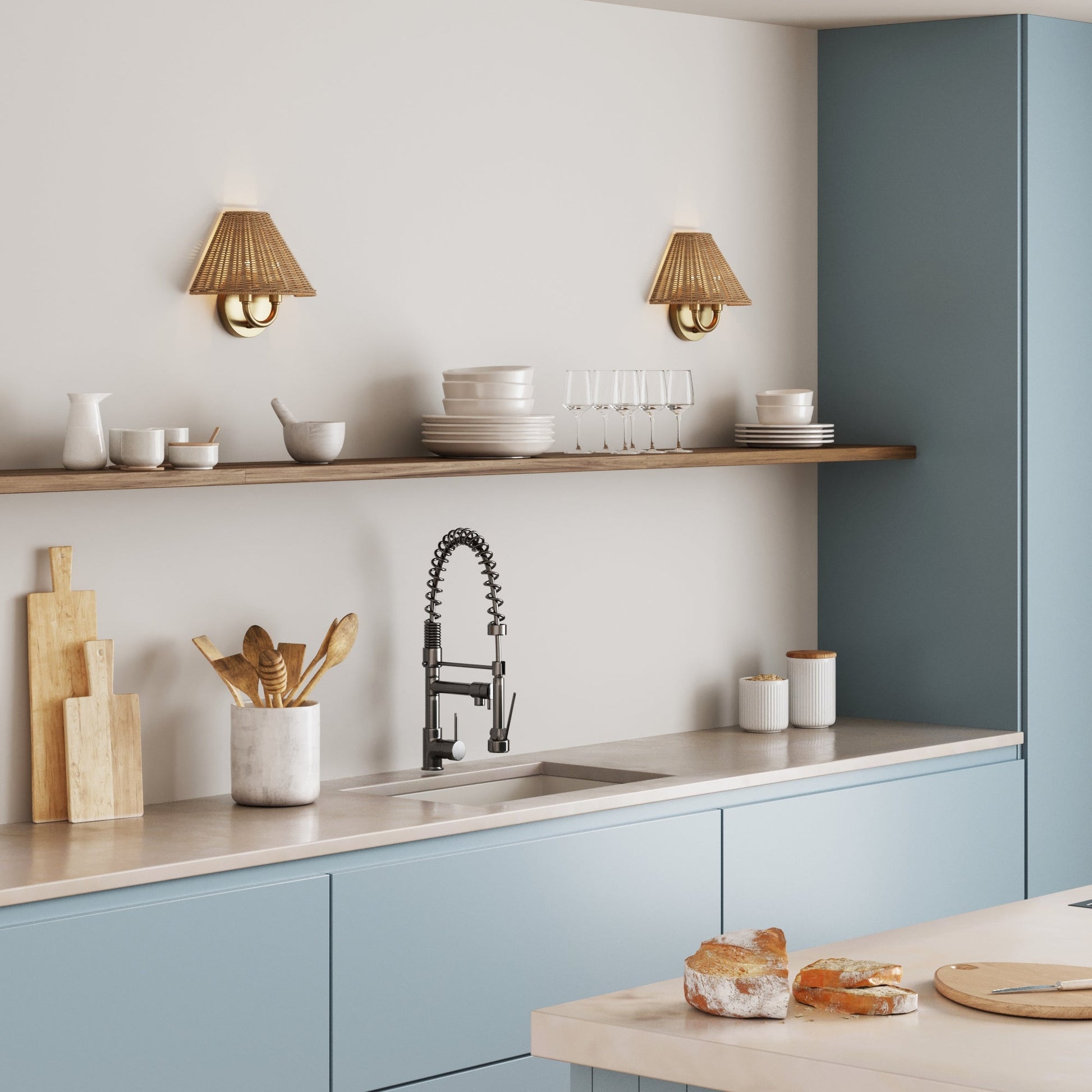 Modern Farmhouse Wall Light with Rattan Shade (Set of 2)