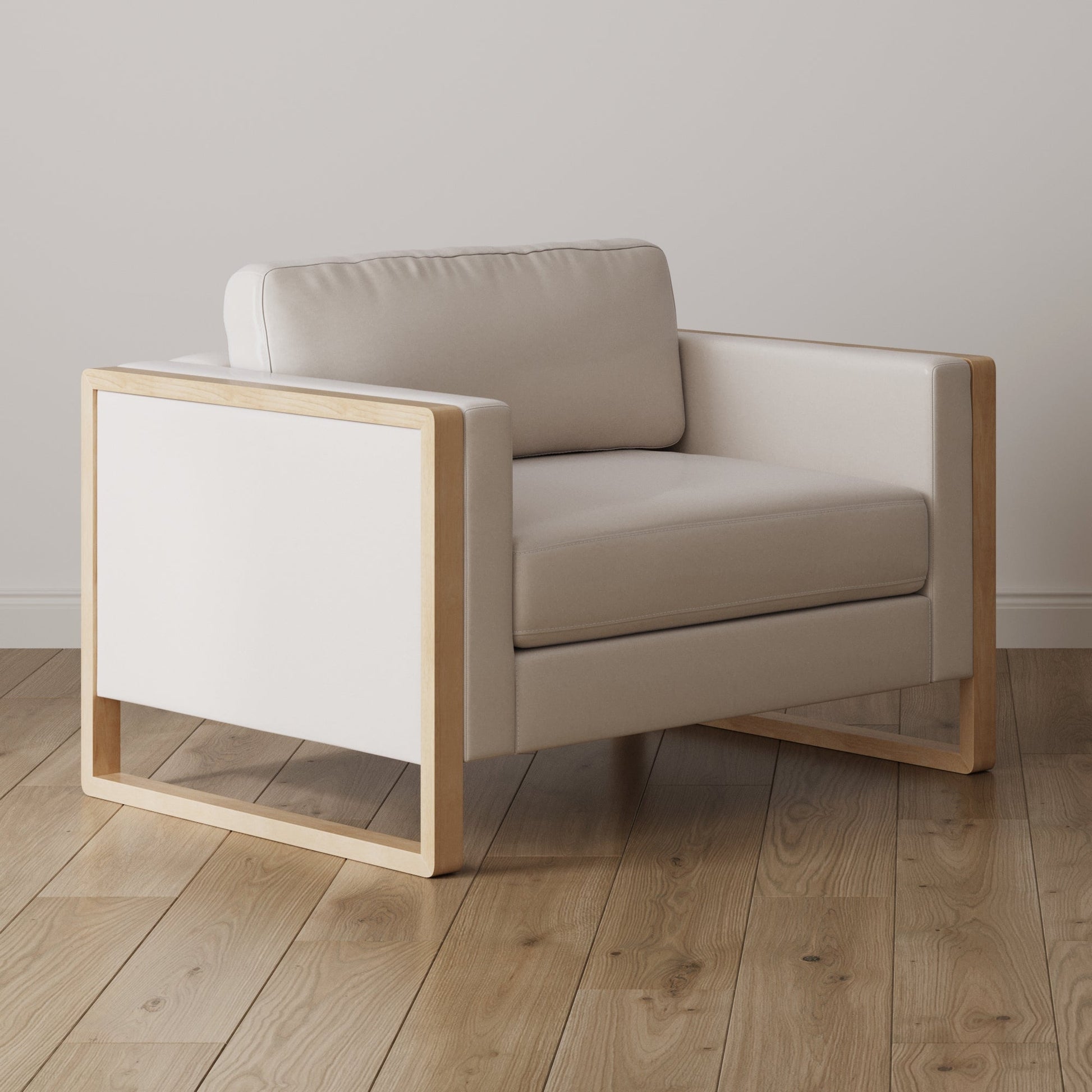 Soft Fabric Wood Frame Armchair Bisque