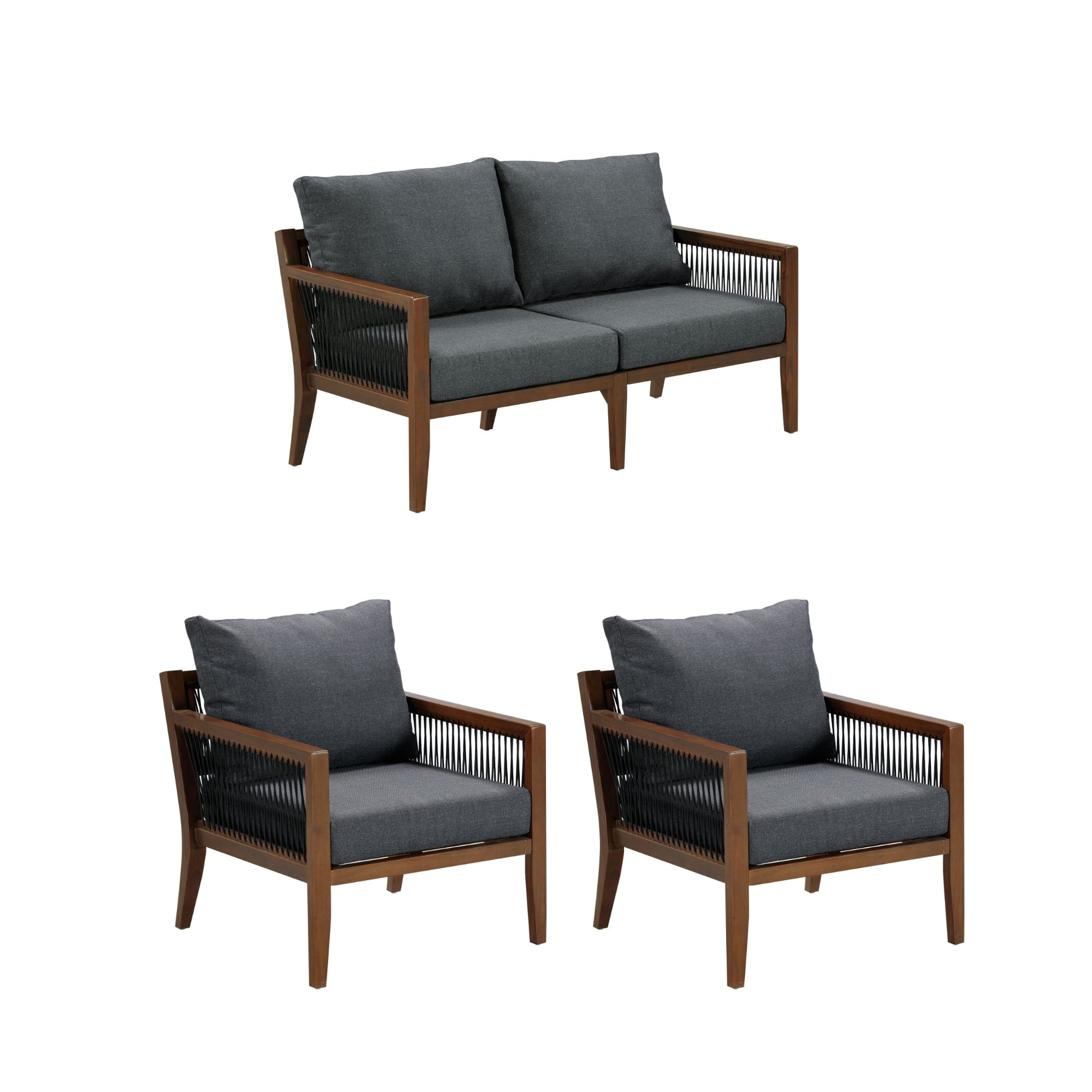 Outdoor 3 Piece Wood Patio Set Loveseat and Chairs