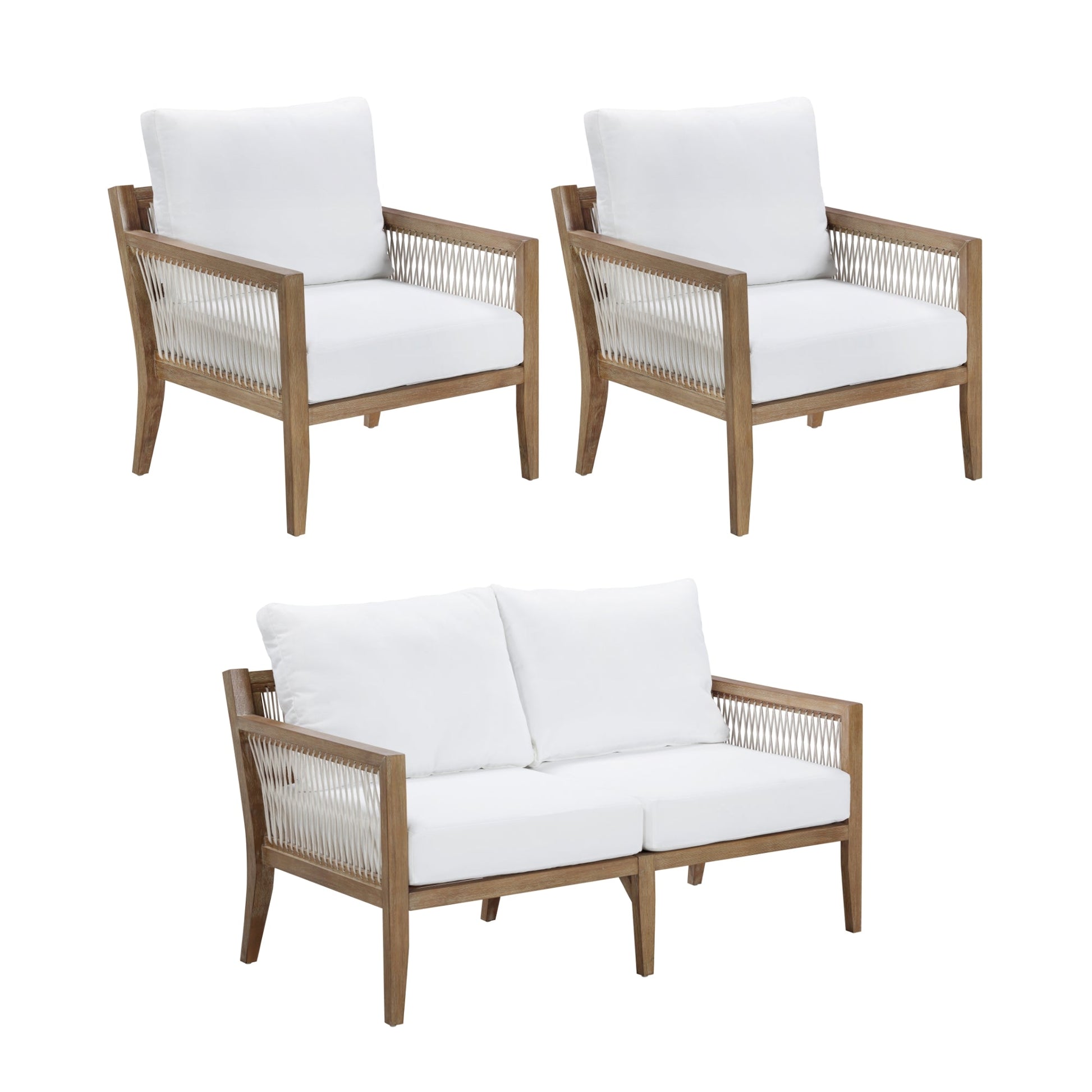Outdoor 3 Piece Wood Patio Set Loveseat and 2 Chairs White