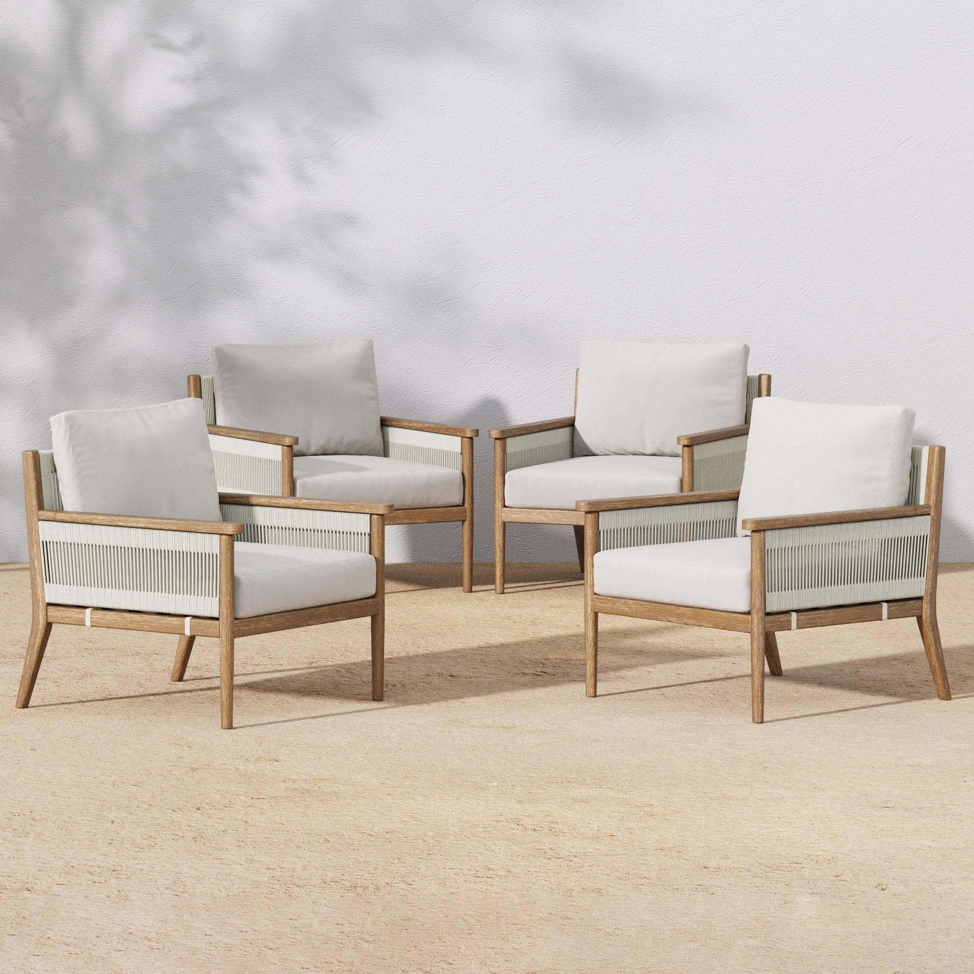 Outdoor Wood & Rope Patio Arm Chairs Light Gray (Set of 4)