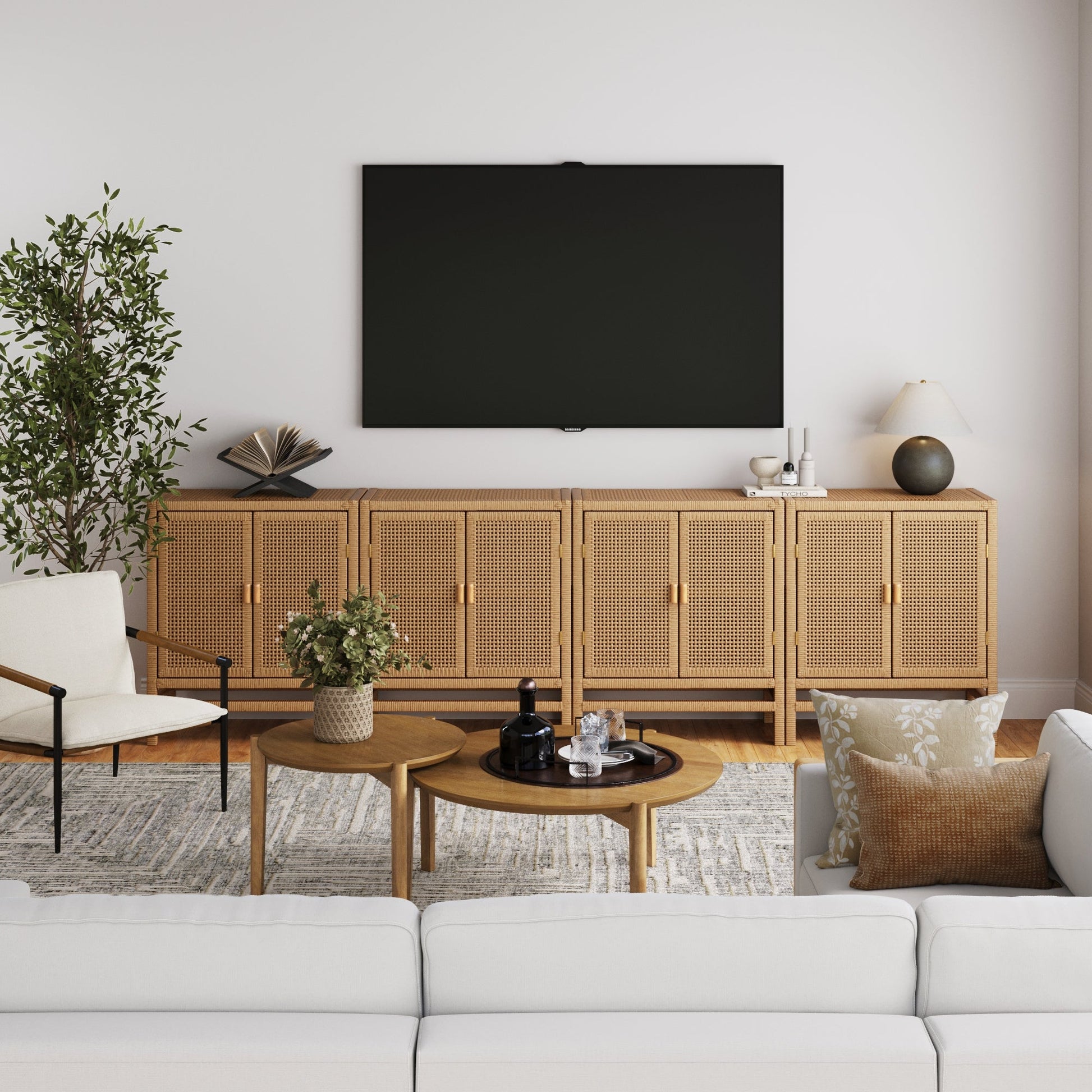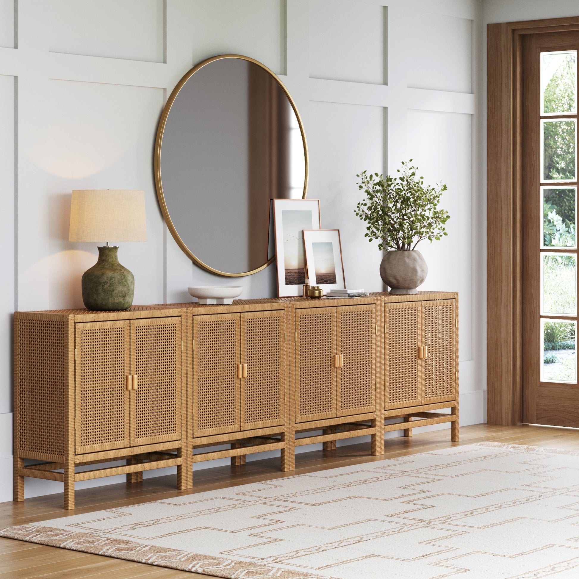 Rattan Wrapped TV Console Credenza Light Golden Oak (Set of 4)