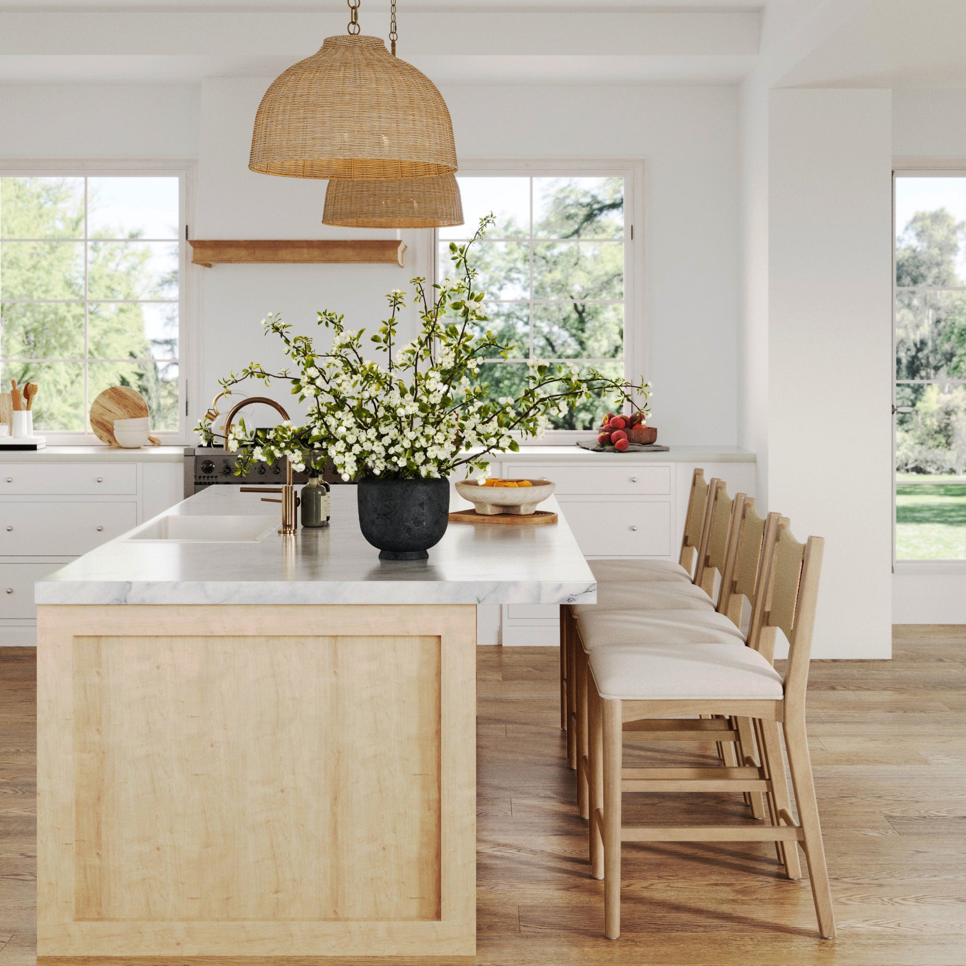 Add natural texture and warmth to your space with the Elodia 2-pack counter stool. At a comfortable 24.5" seat height, it's perfect for perching with a coffee, a cocktail, or just pretending you’re helping cook. The woven synthetic seagrass backrest brings a relaxed, coastal-inspired feel while offering durable support. Crafted with a solid wood frame, the stool is built for everyday use. Each piece showcases the unique variations in color and texture that come from the natural characteristics of the wood. No two stools are exactly alike, making the Elodia a truly distinctive addition to your home.