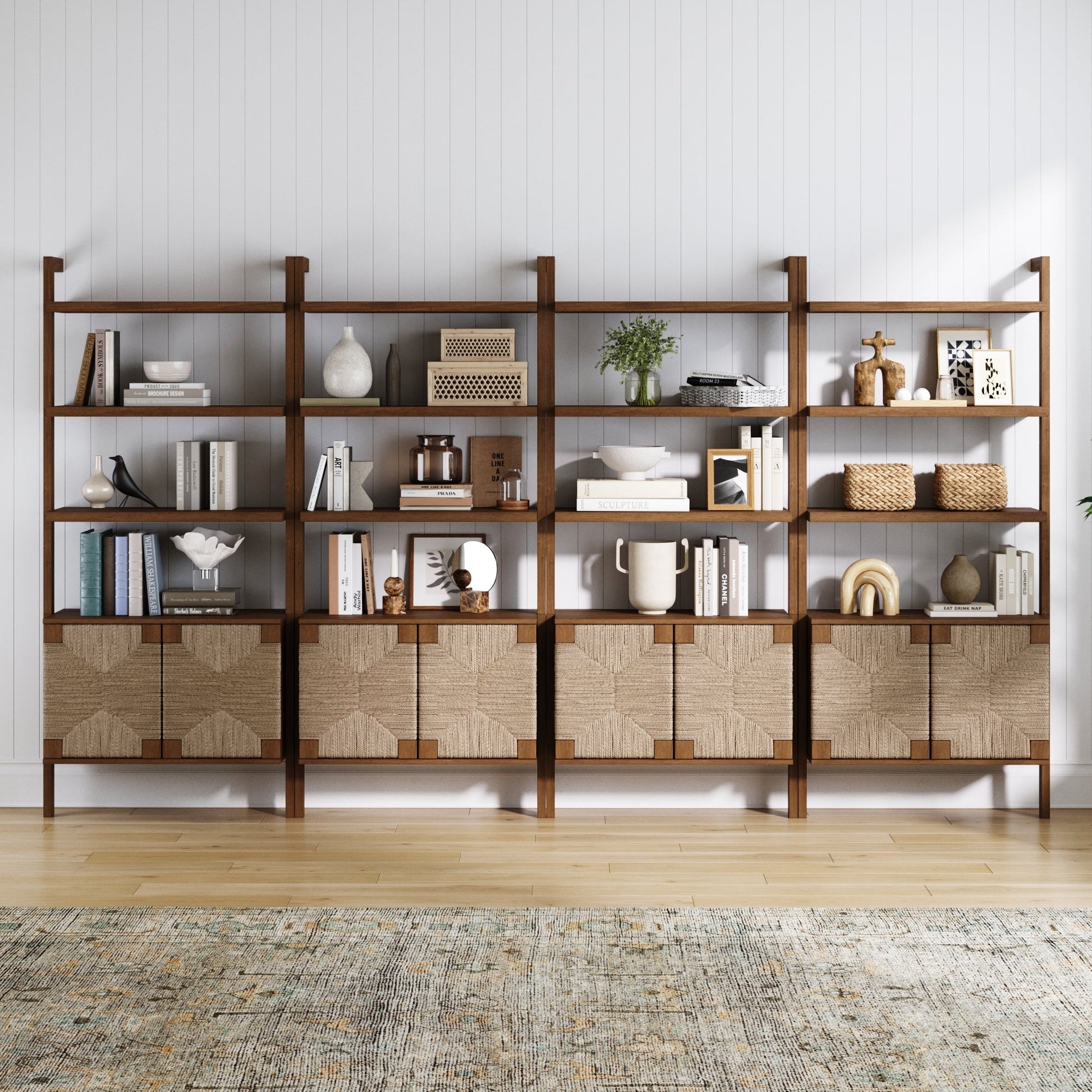 Our Beacon collection is growing. Meet the Beacon Bookshelf in a stunning dark brown finish. Hand-woven natural seagrass door fronts add texture, while the sturdy wood construction ensures it will stand the test of time. This bookshelf is our go-to for timeless organization, featuring open shelving to display your cherished trinkets and closed storage with push latch cabinet doors to tuck away items you prefer hidden. Embrace the cozy warmth of the wire-brushed wood grain, and rest easy knowing it can be securely installed on your wall to eliminate any tipping hazards.
