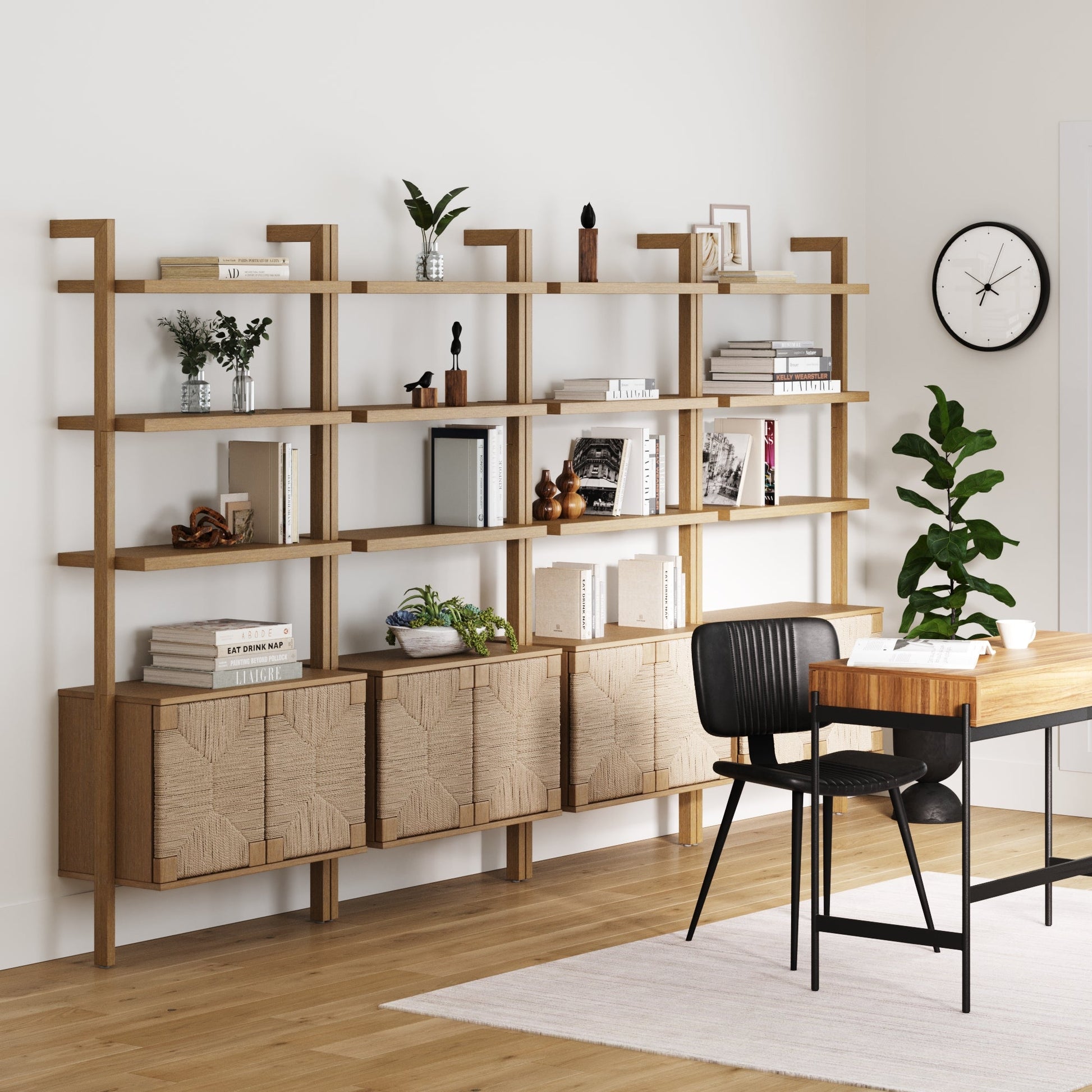 Introducing the one-of-a-kind Beacon Bookshelf—where boho charm and practicality unite! Hand-woven natural seagrass door fronts add texture, while the sturdy wood construction ensures it will stand the test of time. This bookshelf is our go-to for timeless organization, featuring open shelving to display your cherished trinkets and closed storage with push latch cabinet doors to tuck away items you prefer hidden. Embrace the cozy warmth of the wire-brushed wood grain, and rest easy knowing it can be securely installed on your wall to eliminate any tipping hazards. Experience the joy of a boho-inspired space with the Beacon Bookshelf as your style centerpiece!