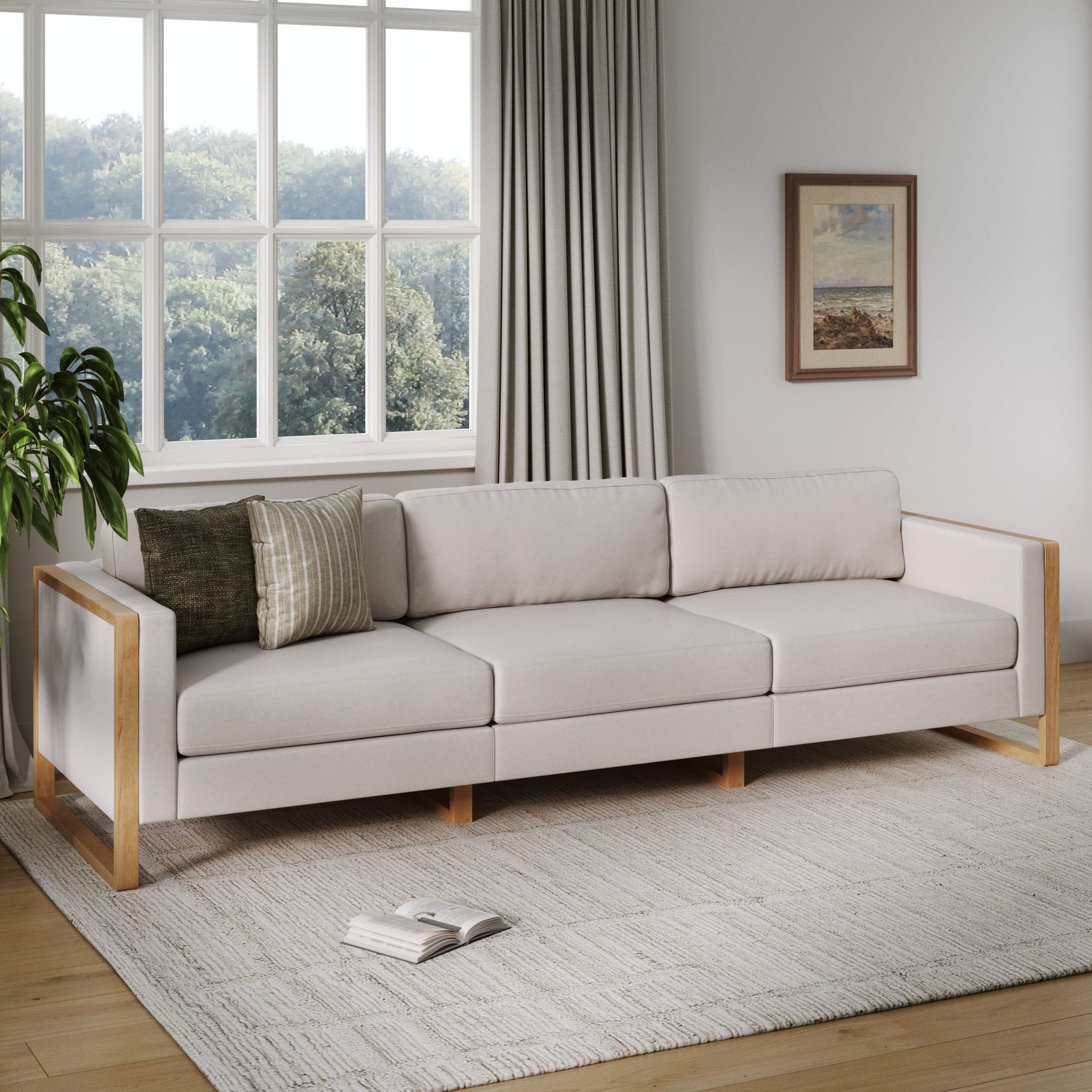 Soft Fabric 3-Seat Wood Frame Sofa Couch Bisque