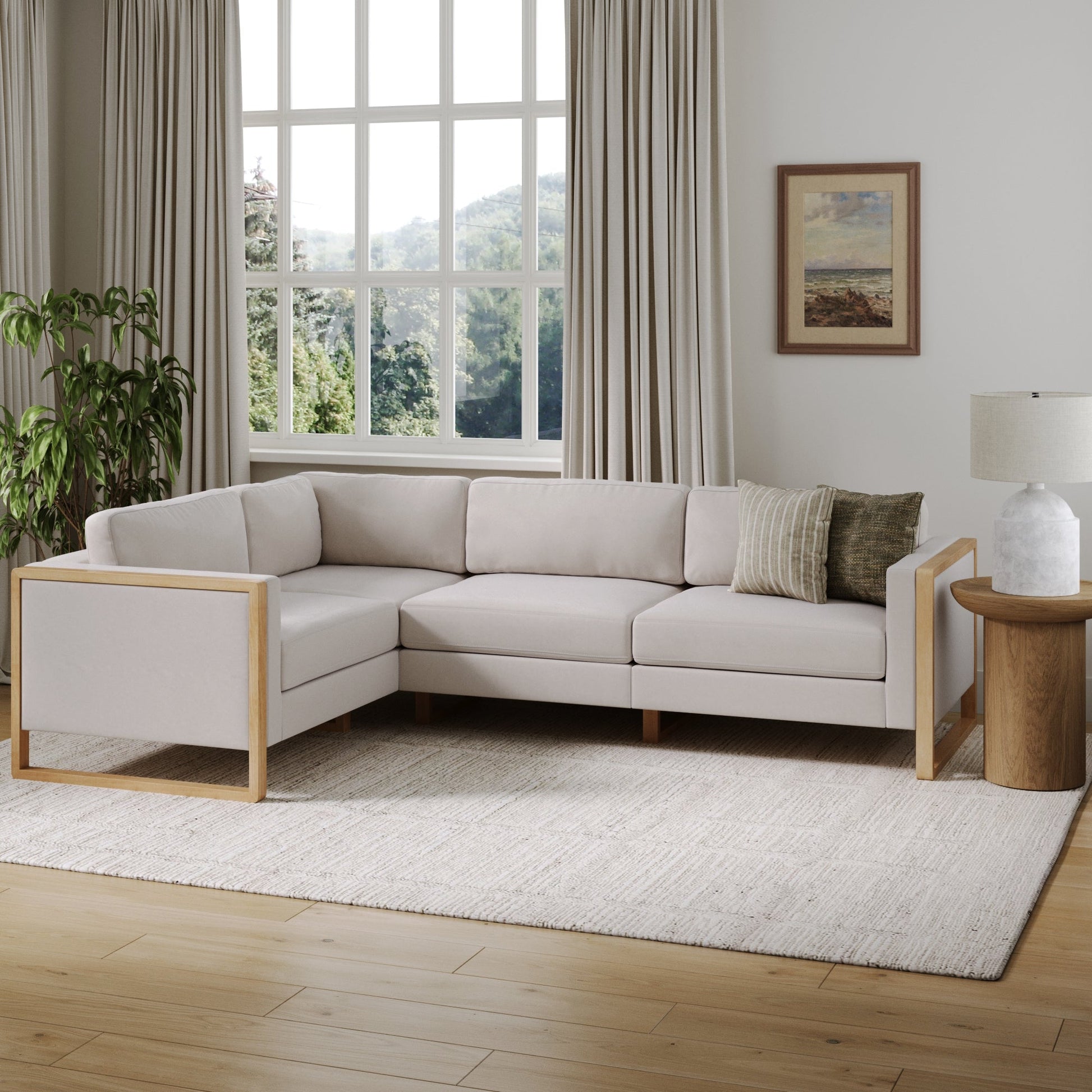 Soft Fabric 4-Seat Wood Frame Sectional Sofa Couch Bisque
