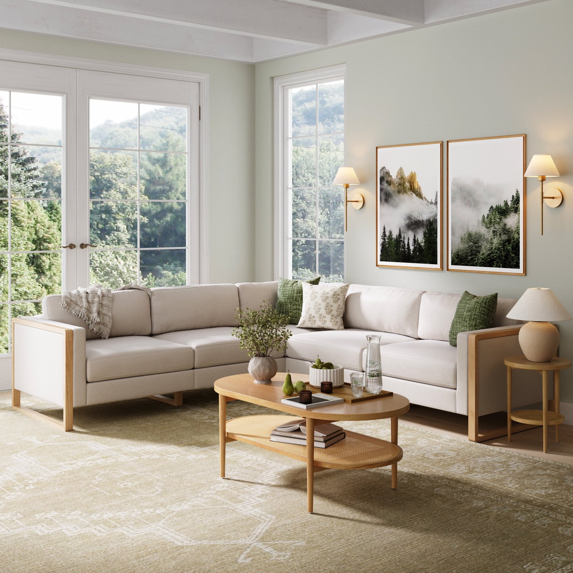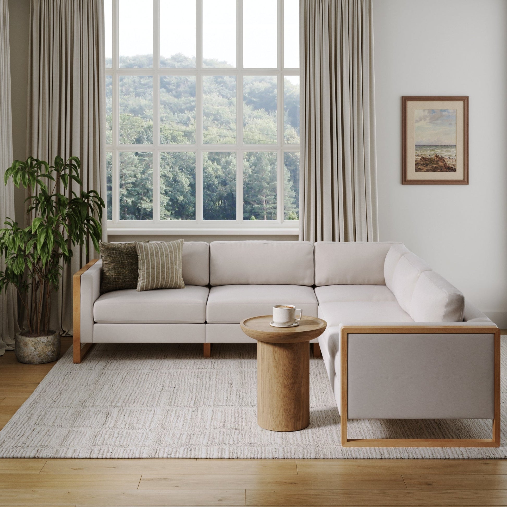 Soft Fabric 5-Seat Wood Frame Sectional Sofa Couch Bisque