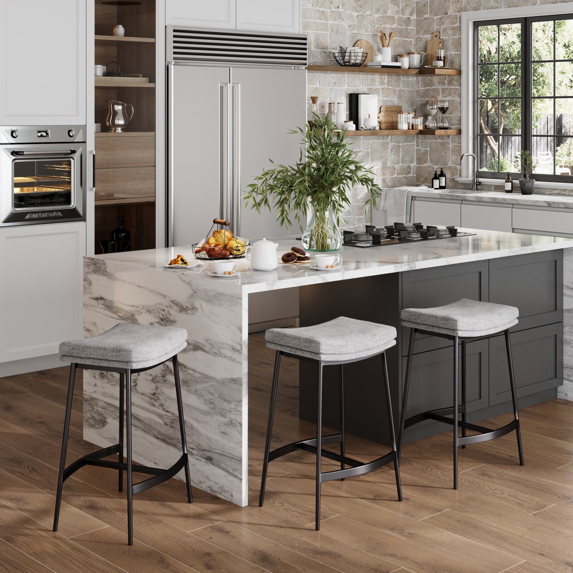 Upholstered Counter Height Saddle Bar Stools Gray (Set of 3)