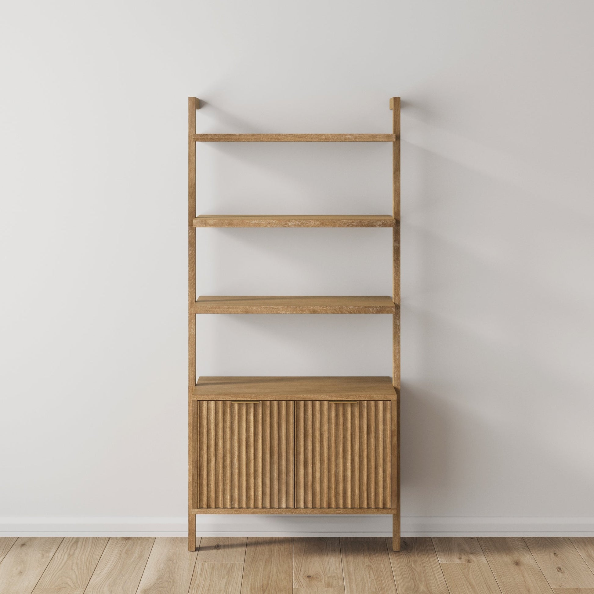 Mid-Century Fluted Wall Bookshelf with Doors Light Brown