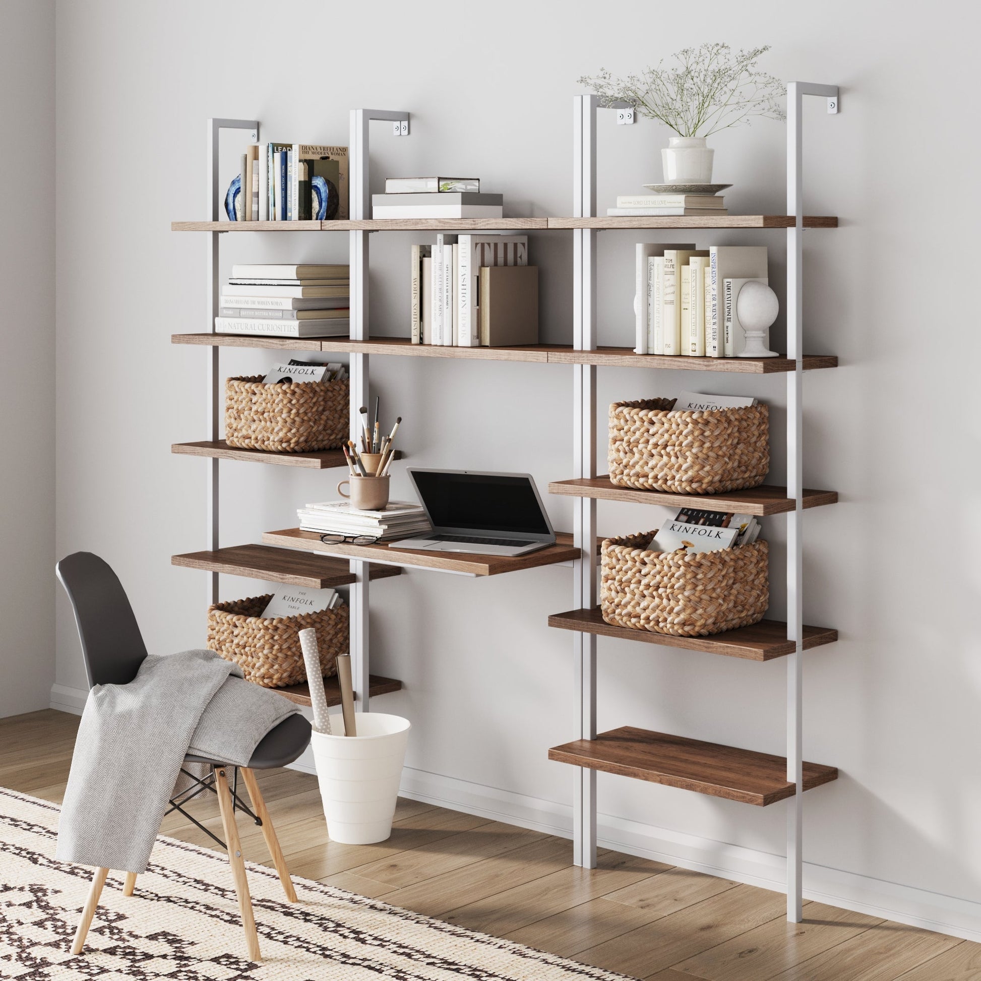 Wood & Metal Wall Mount Office Desk Set Rustic Oak