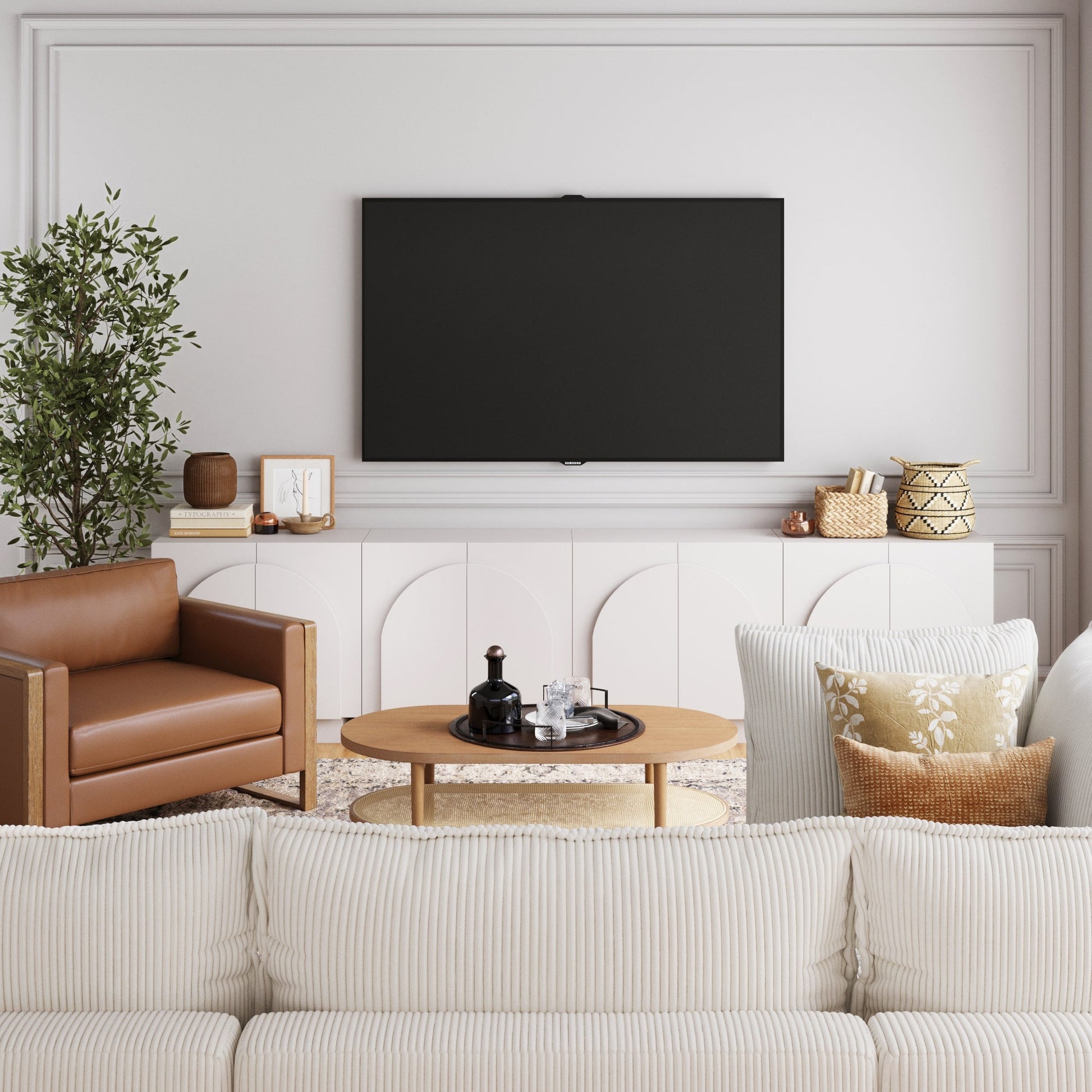 Wood Mid-Century Arched TV Console Credenza White (Set of 4)