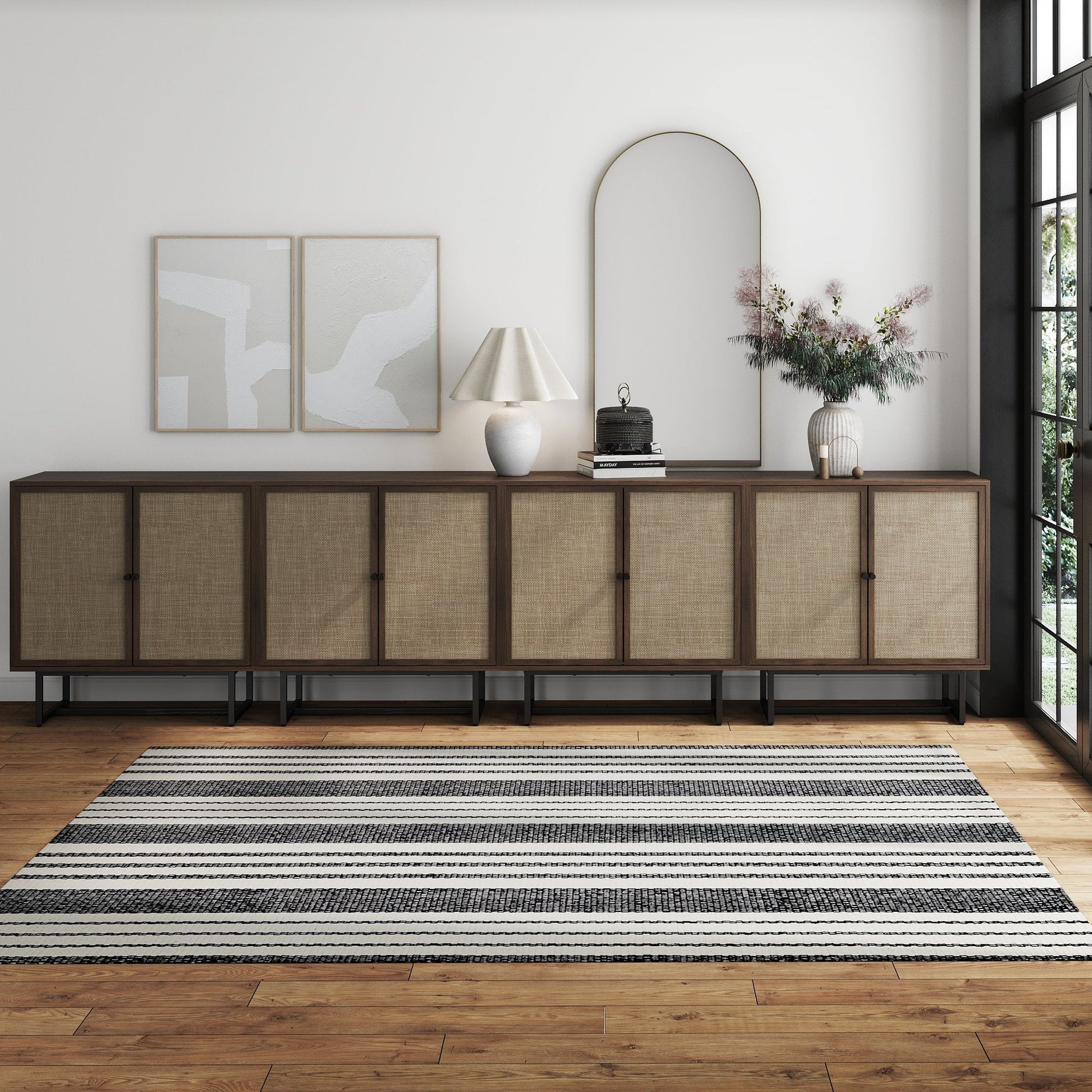 Large Rattan Credenza Console Table Walnut (Set of 4)