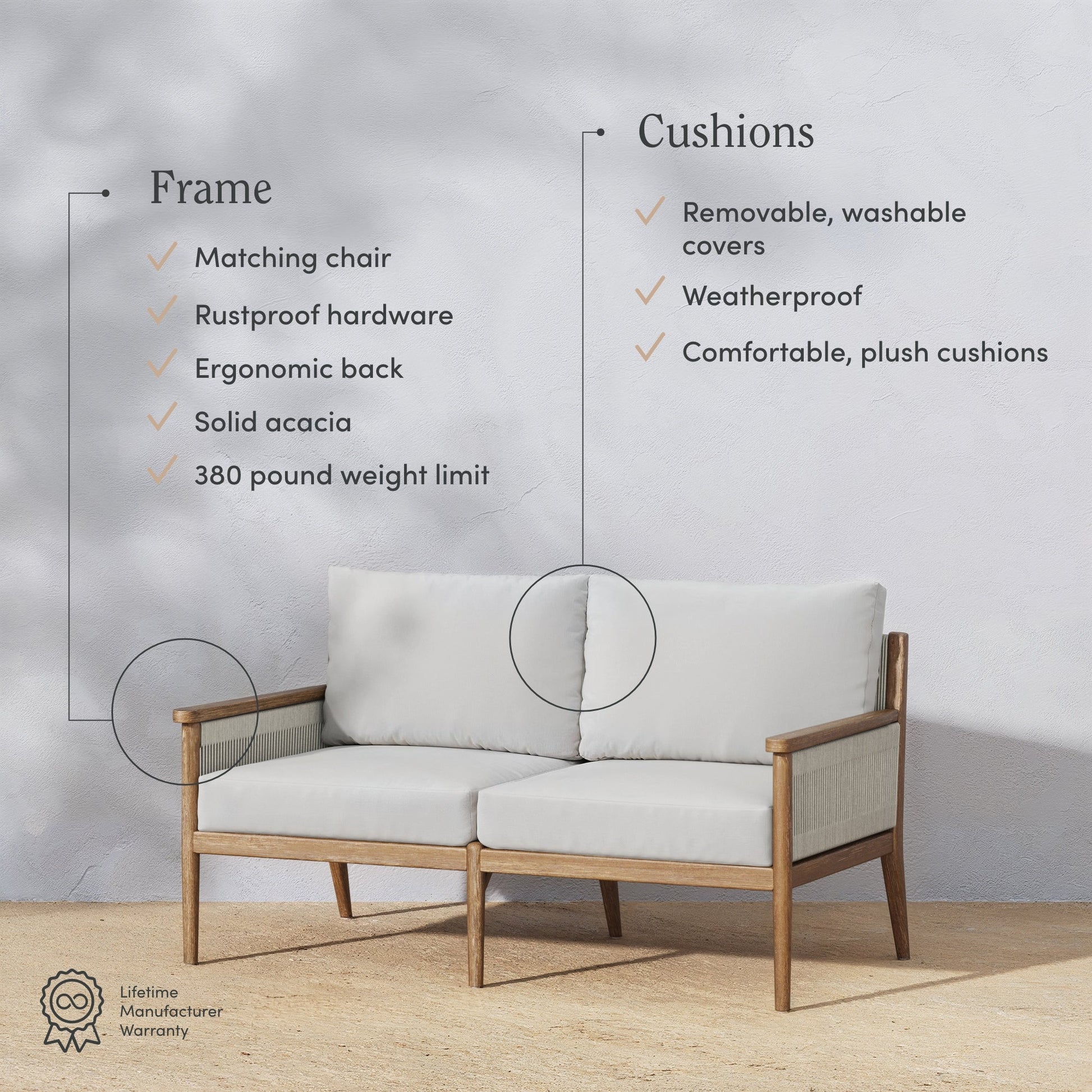 - Weatherproof solid acacia wood frame