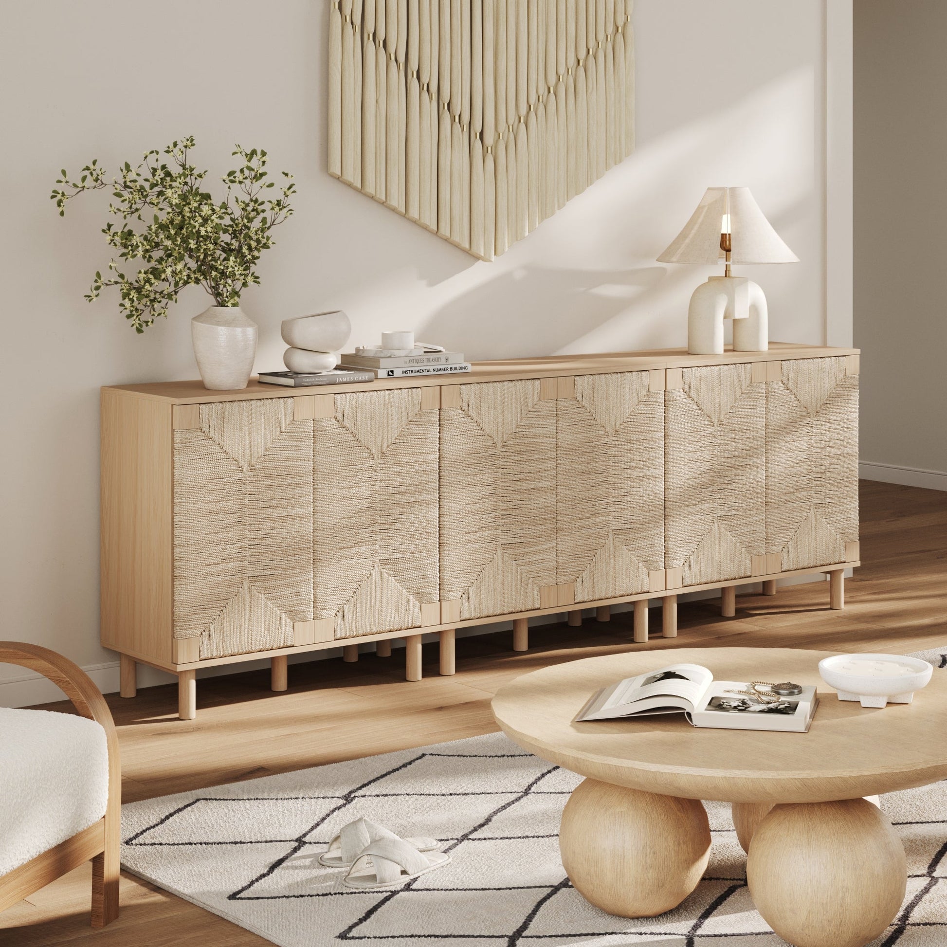 Wood & Seagrass Storage Cabinet Raw Oak