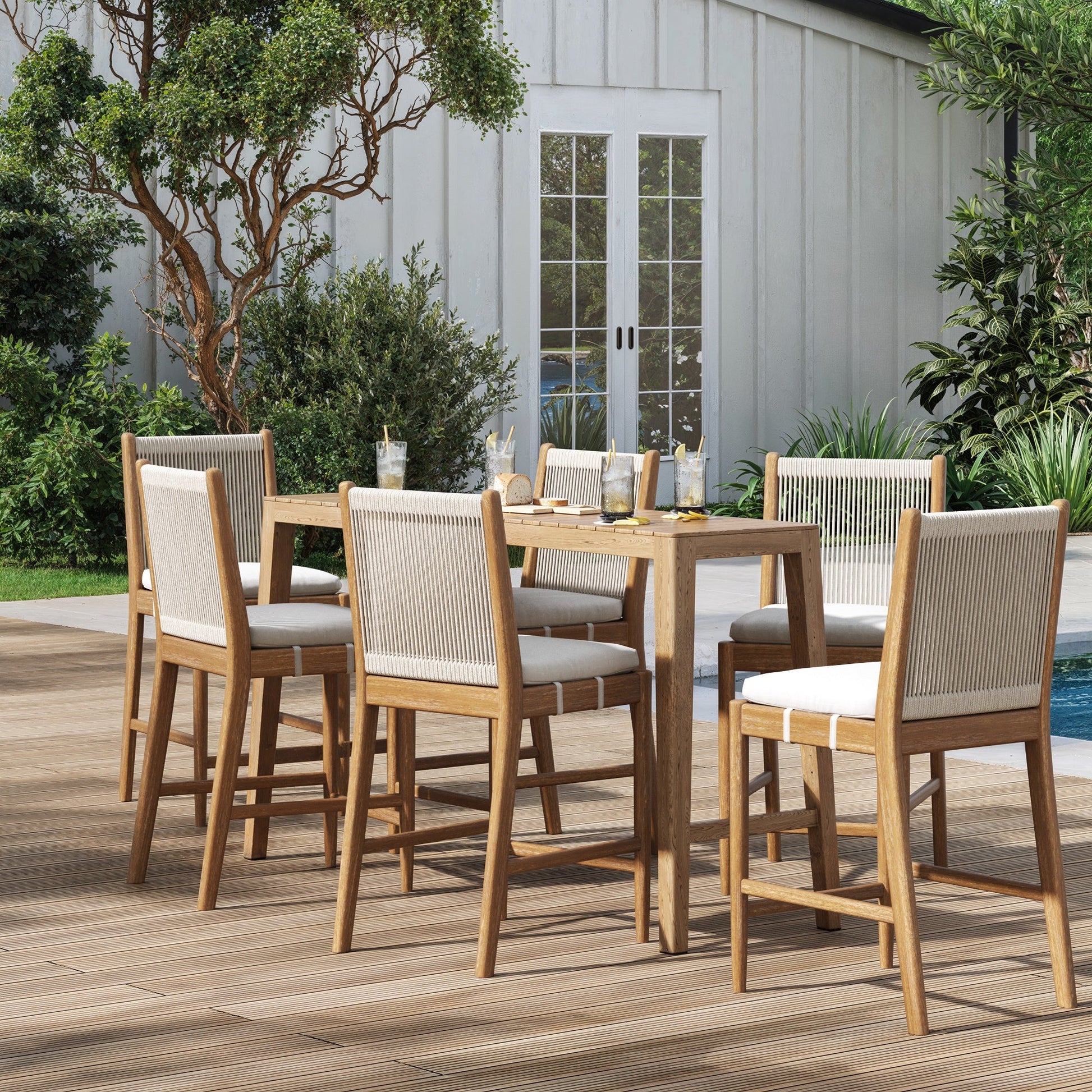 Outdoor Wood & Rope Counter Height Bar Stools Brushed Light Brown (Set of 6)